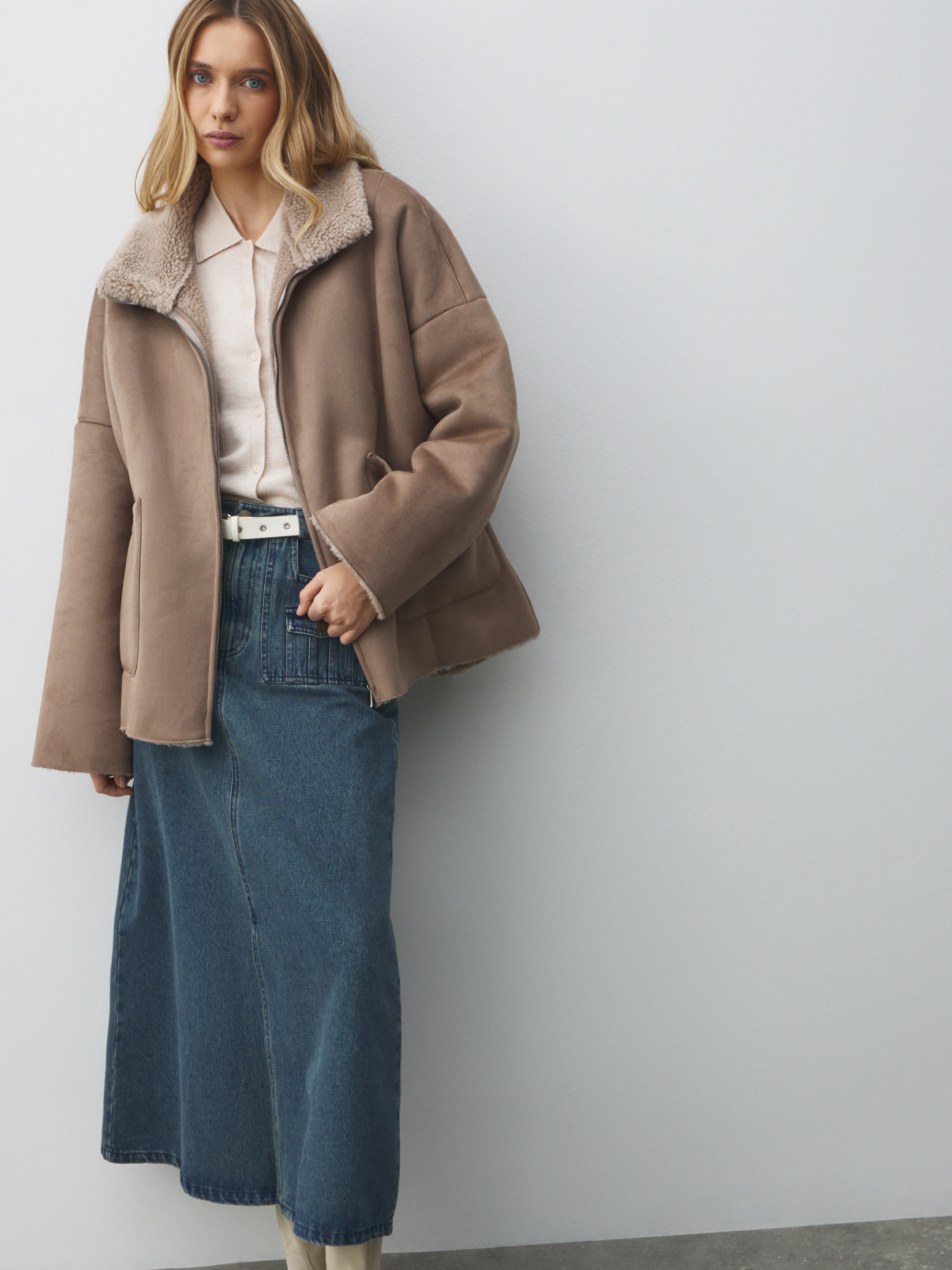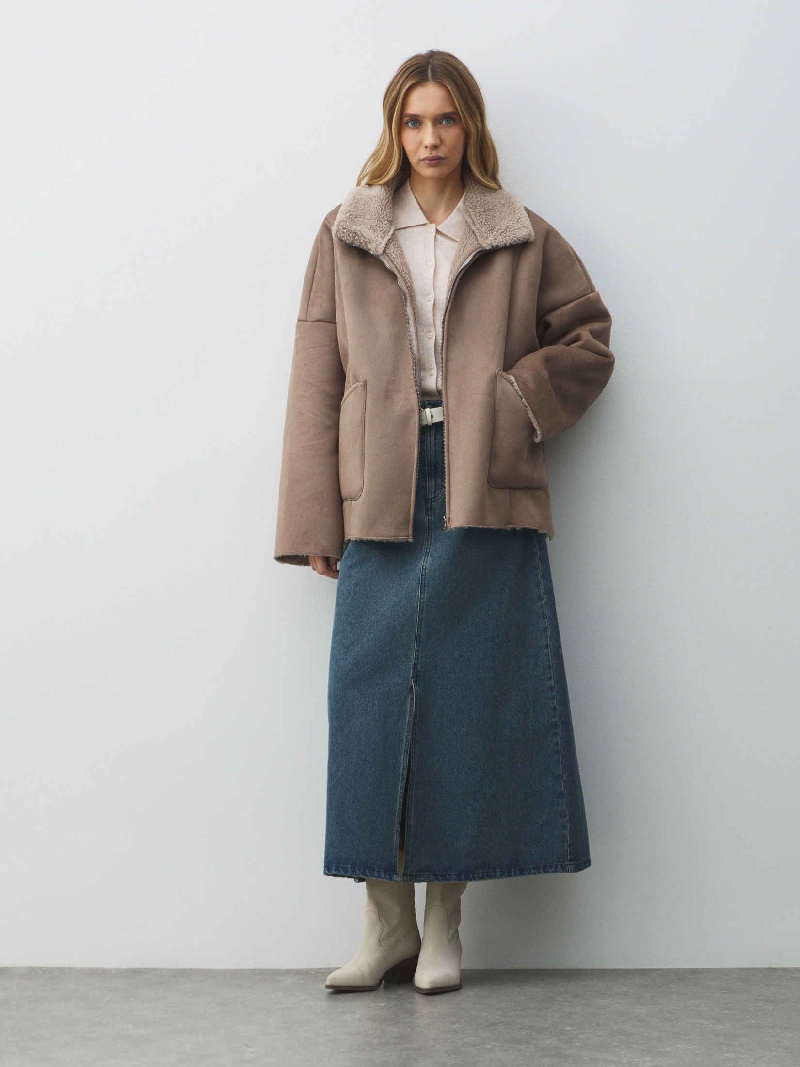 Женская дубленка MAISON DAVID 4986738, серо-коричневый