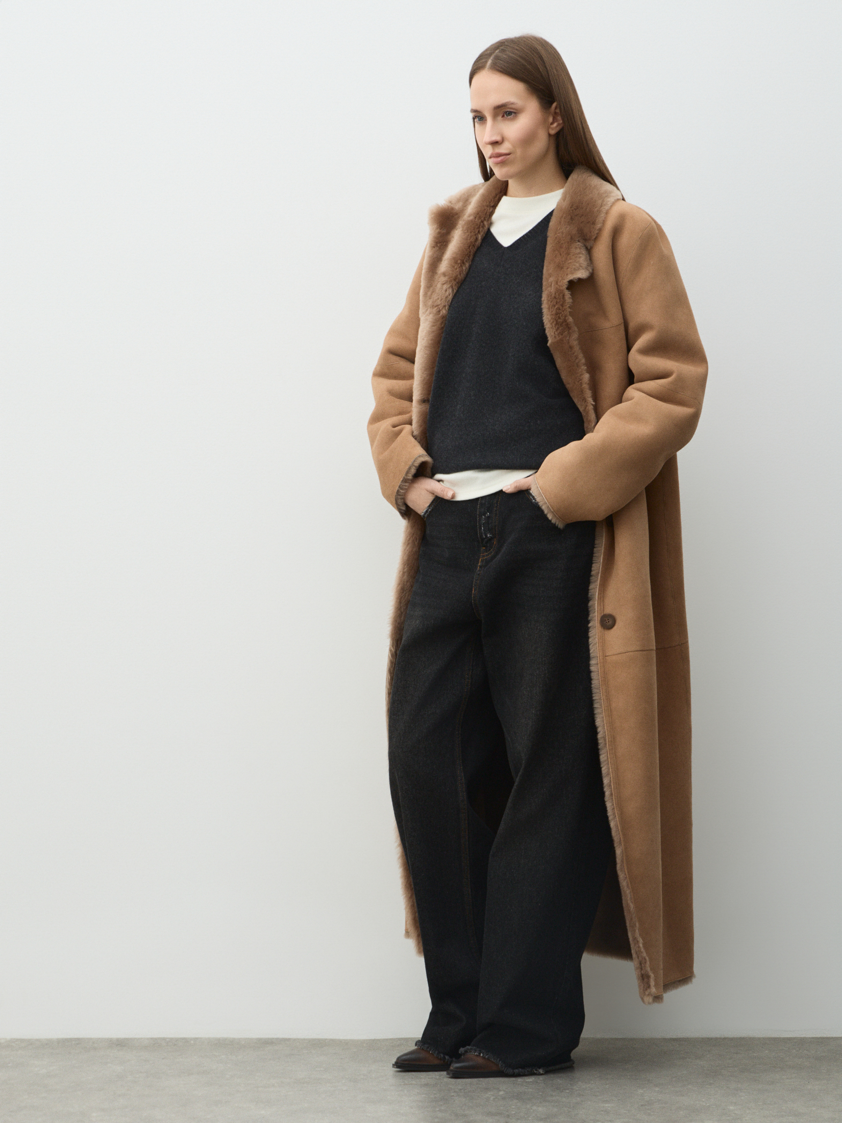 Женская дубленка MAISON DAVID 5031317, бежево-коричневый