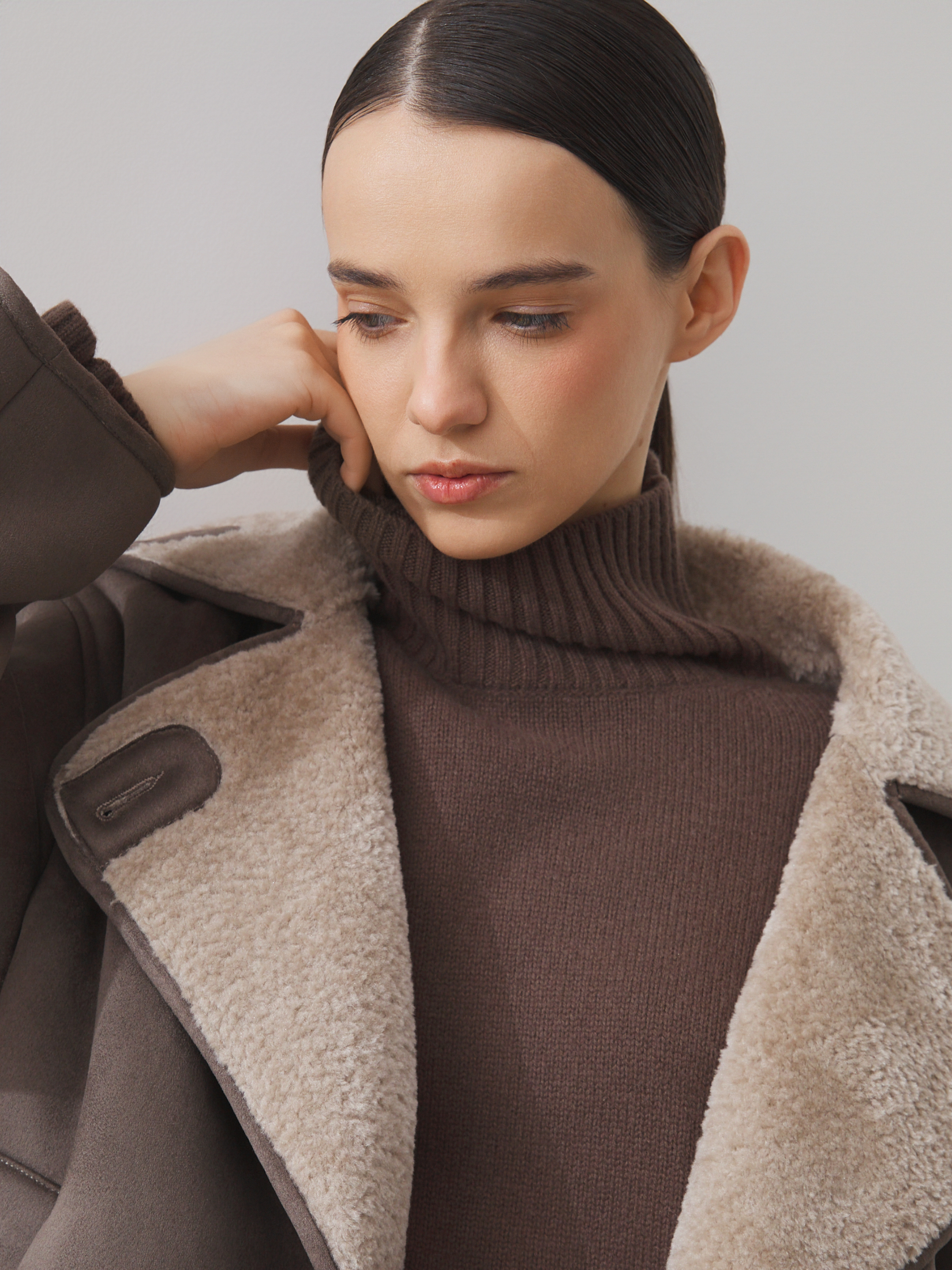 Женская дубленка MAISON DAVID 4647856, коричнево-серый