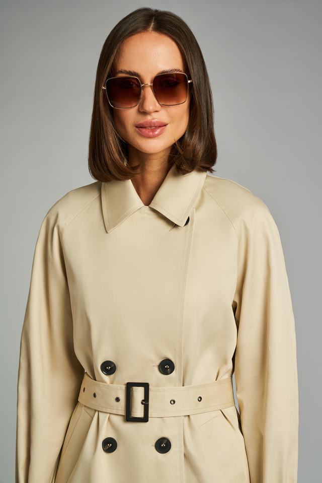 Плащ длиной в 110 см идеально подойдет для миниатюрных девушек, а также обладательниц среднего роста. Изделие прямого силуэта с элегантными лацканами станет частью базового гардероба.