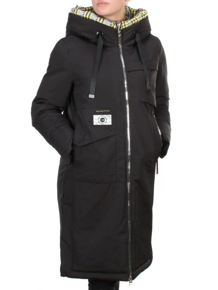 2166 BLACK Пальто зимнее женское MONGEDI (200 гр. холлофайбера)