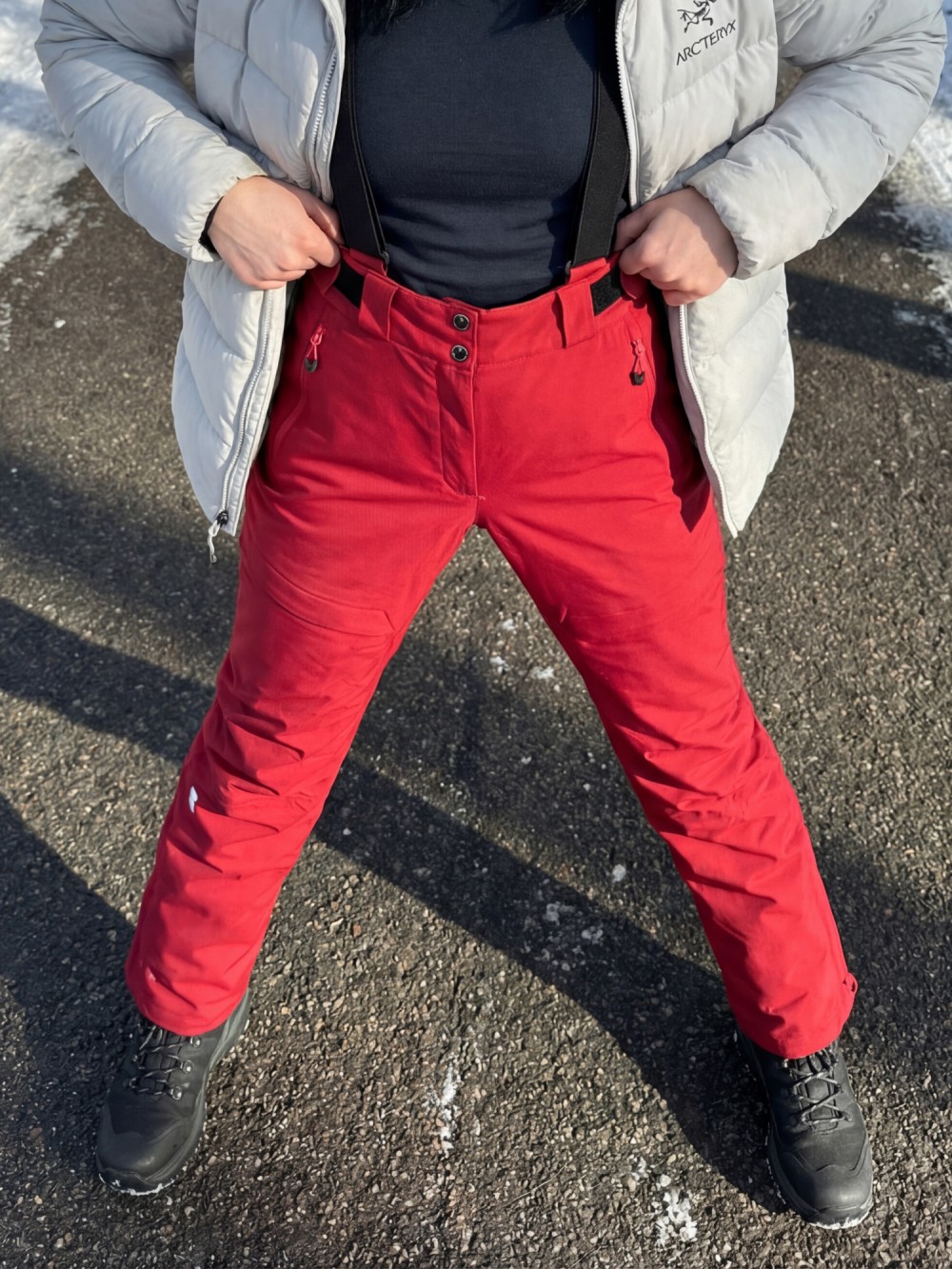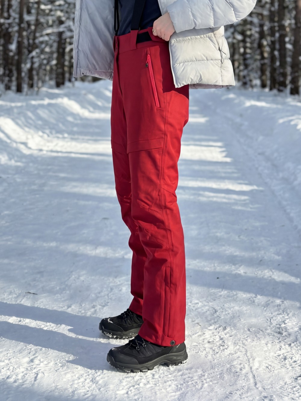Брюки горнолыжные женские УЦЕНКА красного цвета 0935Kr