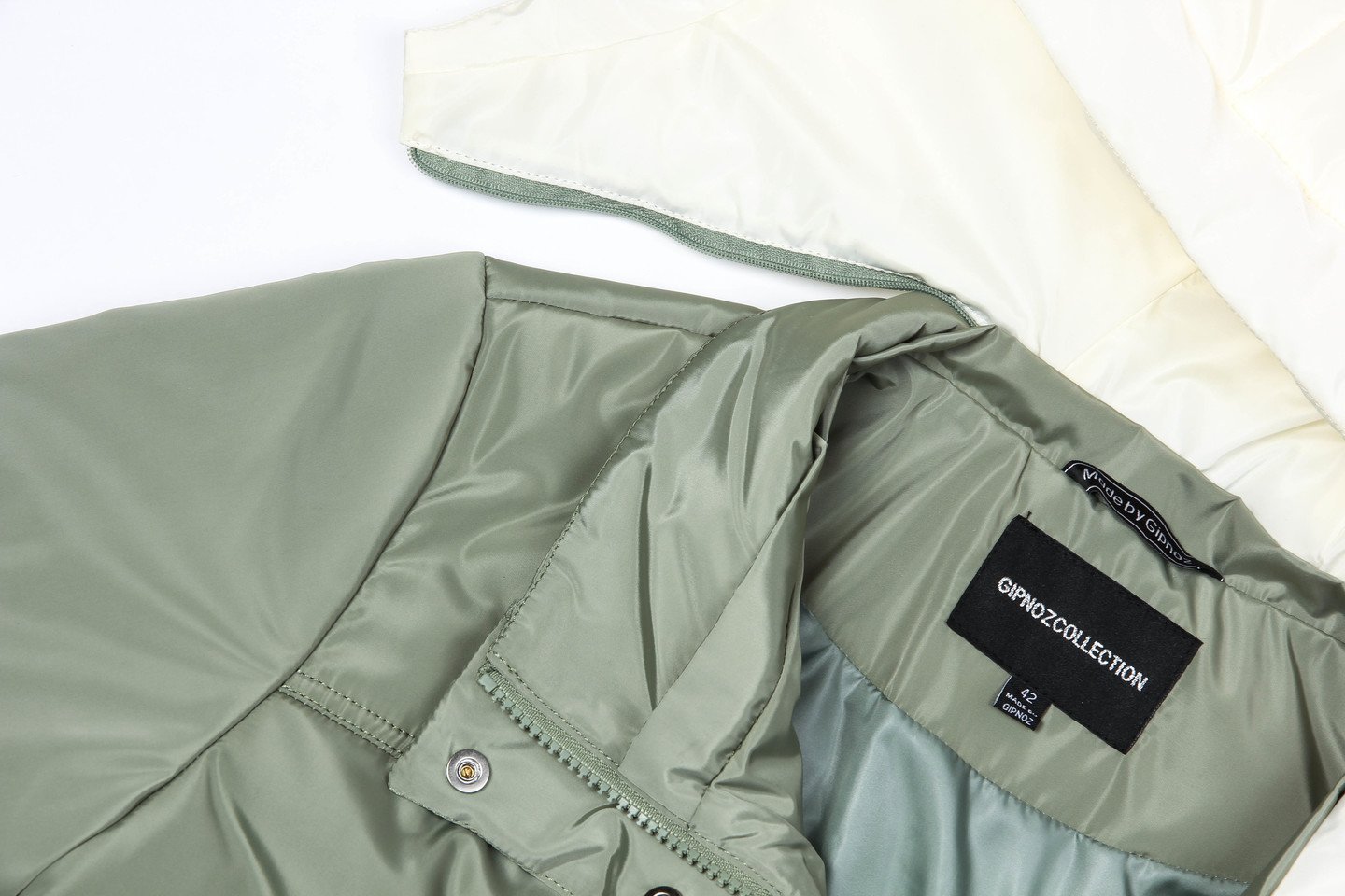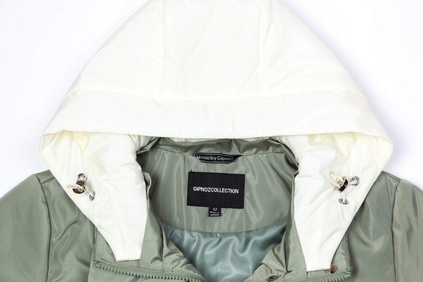 Легкое пальто из плащевой ткани — отличный вариант на межсезонье, плотная ткань защитит от ветра и дождя. Изделие прямого силуэта, объем изделия свободный. Отличительная особенность — отстегивающийся капюшон цвета слоновой кости прекрасно смотрится около лица. Накладные карманы уже несколько сезонов очень популярны — также присутствуют в нашей модели. По линии низа спинка длиннее переда. Утеплитель термофин, плотность 100. серо-зеленый