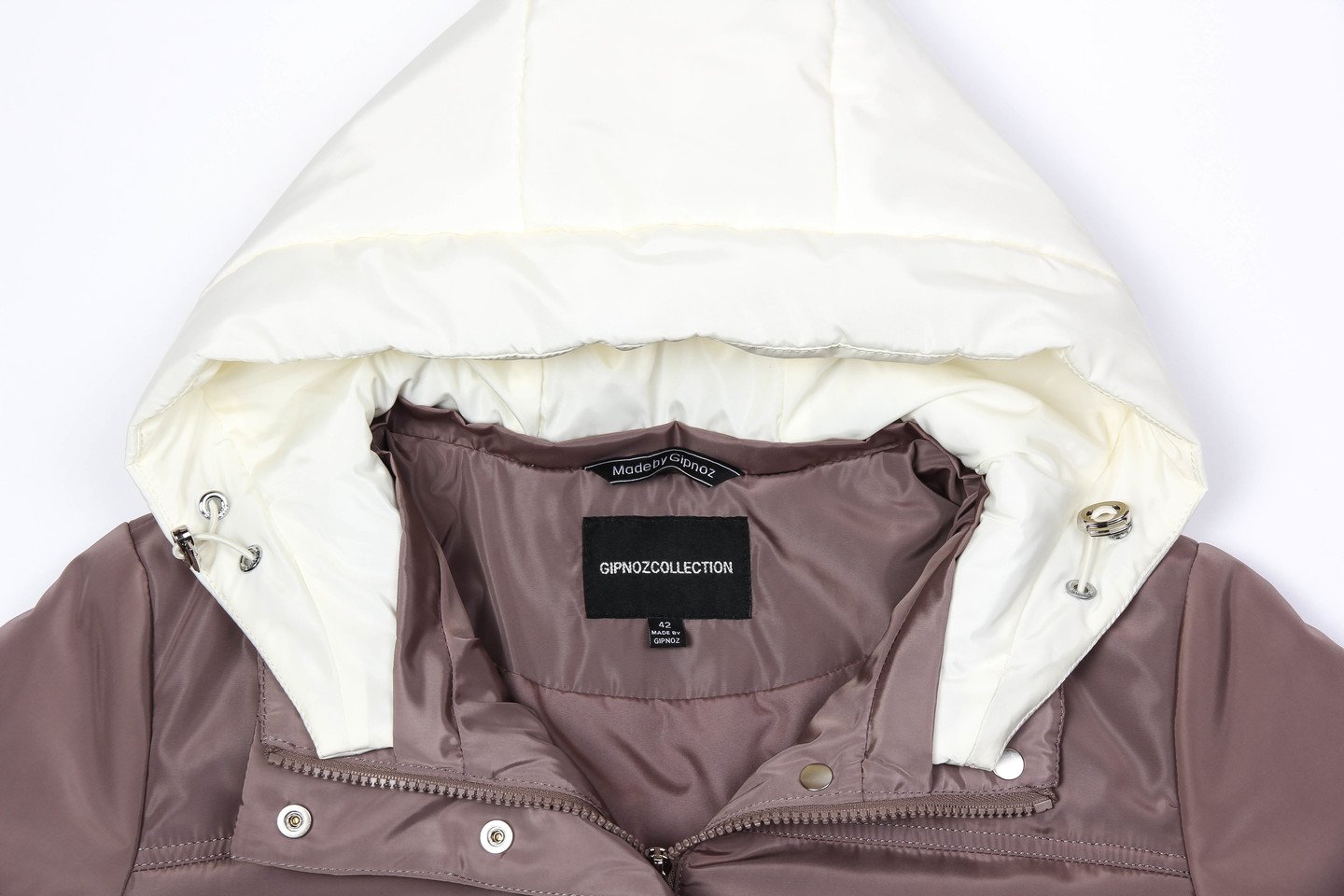 Легкое пальто из плащевой ткани — отличный вариант на межсезонье, плотная ткань защитит от ветра и дождя. Изделие прямого силуэта, объем изделия свободный. Отличительная особенность — отстегивающийся капюшон цвета слоновой кости прекрасно смотрится около лица. Накладные карманы уже несколько сезонов очень популярны — также присутствуют в нашей модели. По линии низа спинка длиннее переда. Утеплитель термофин, плотность 100. капучино