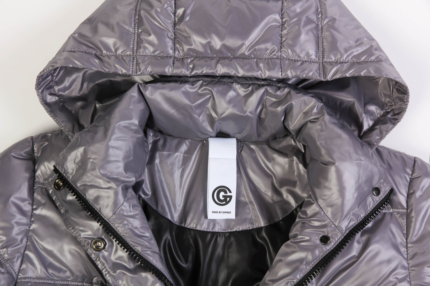 Силуэт изделия прямой, втачной рукав слегка спущенное плечо, отстегивающийся капюшон, карманы листочки, по переду застежка на молнию с планкой. Утеплитель синтепух, температурный режим до -10. серый жемчуг