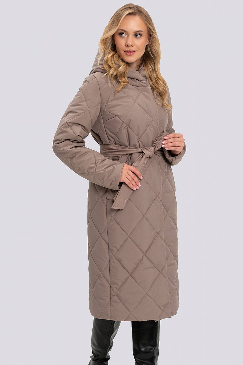 В этом году, как и в предыдущих, не теряют свою актуальность стеганые пальто. Изделие из данной ткани более практичное и удобное в использовании. Пальто в классическом стиле, полуприлегающего силуэта. Умеренный объем изделия идеально подходит для создания уютного образа, который при этом будет выглядеть стильно и элегантно. Втачной покрой рукава идеален для любой фигуры, придает стройность и строгость образу. Капюшон – очень удобная и актуальная деталь верхней одежды, защитит от ветра и холода. Рукав отгибается на манжет. Модель отлично смотрится с поясом и без. Пальто застегивается на кнопки и внутреннюю молнию. Новый вид стежки несомненно приковывает взгляды окружающих. Нам удалось продлить сезон носки изделия, за счет внедрения в производство нового вида стеганой ткани. Ткань верха плотная и многослойная. Утеплитель термофин, плотность 200. Температурный режим до -10. латте