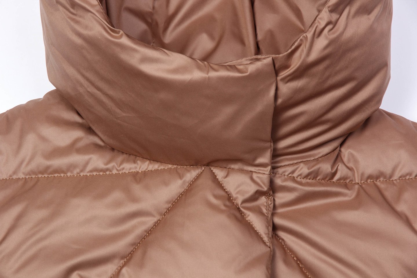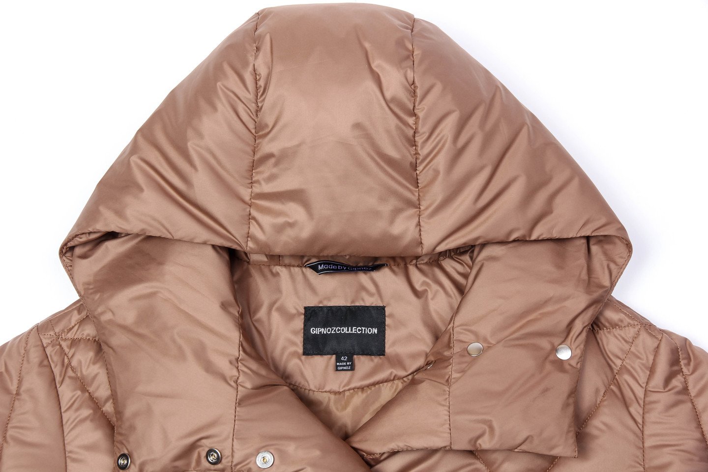 Женские пальто представляют собой лучший фасон верхней одежды при прохладной погоде, поскольку они надежно защитят от ветра и холода. Прямой силуэт изделия скроет все недостатки фигуры, придаст максимум комфорта при носке. Застежка смещенная на потайные кнопки, уютный капюшон, удобные карманы на молнии в шве. Утеплитель синтепух, плотность 200, температурный режим до -10. корица