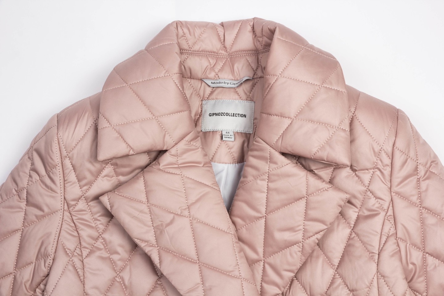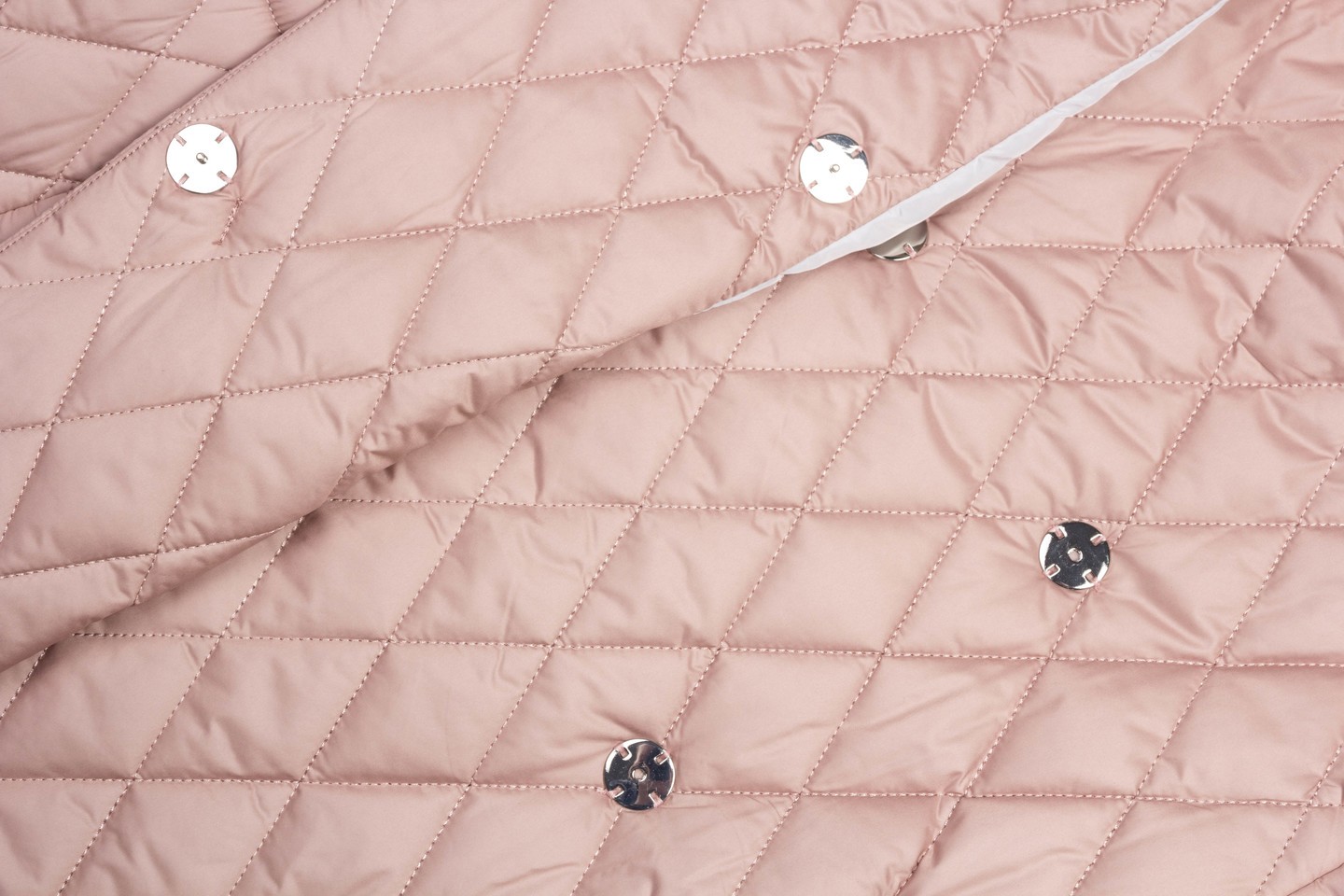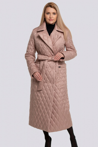 Стеганое пальто — легкое, практичное, удобное, поэтому стало неотъемлемой частью повседневного гардероба. Длинное пальто прилегающего силуэта с английским воротником обязательно обратит на себя внимание деловых леди, которые при выборе нарядов ,в первую очередь оценивают уровень комфорта и практичности. Рукава втачные, застежка двубортная на кнопки. На переде накладной карман. Спинка со шлицей по среднему шву, шлица на потайных кнопках. Есть пояс. Утеплитель термофин, плотность 100. бежевый крем