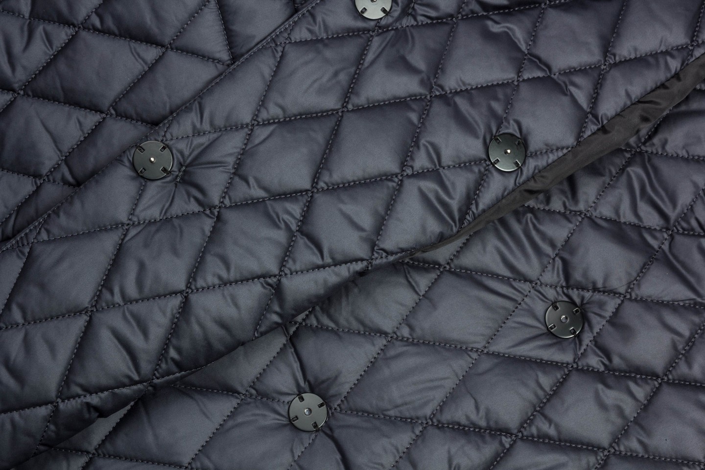 Стеганое пальто — легкое, практичное, удобное, поэтому стало неотъемлемой частью повседневного гардероба. Длинное пальто прилегающего силуэта с английским воротником обязательно обратит на себя внимание деловых леди, которые при выборе нарядов ,в первую очередь оценивают уровень комфорта и практичности. Рукава втачные, застежка двубортная на кнопки. На переде накладной карман. Спинка со шлицей по среднему шву, шлица на потайных кнопках. Есть пояс. Утеплитель термофин, плотность 100. черно-синий