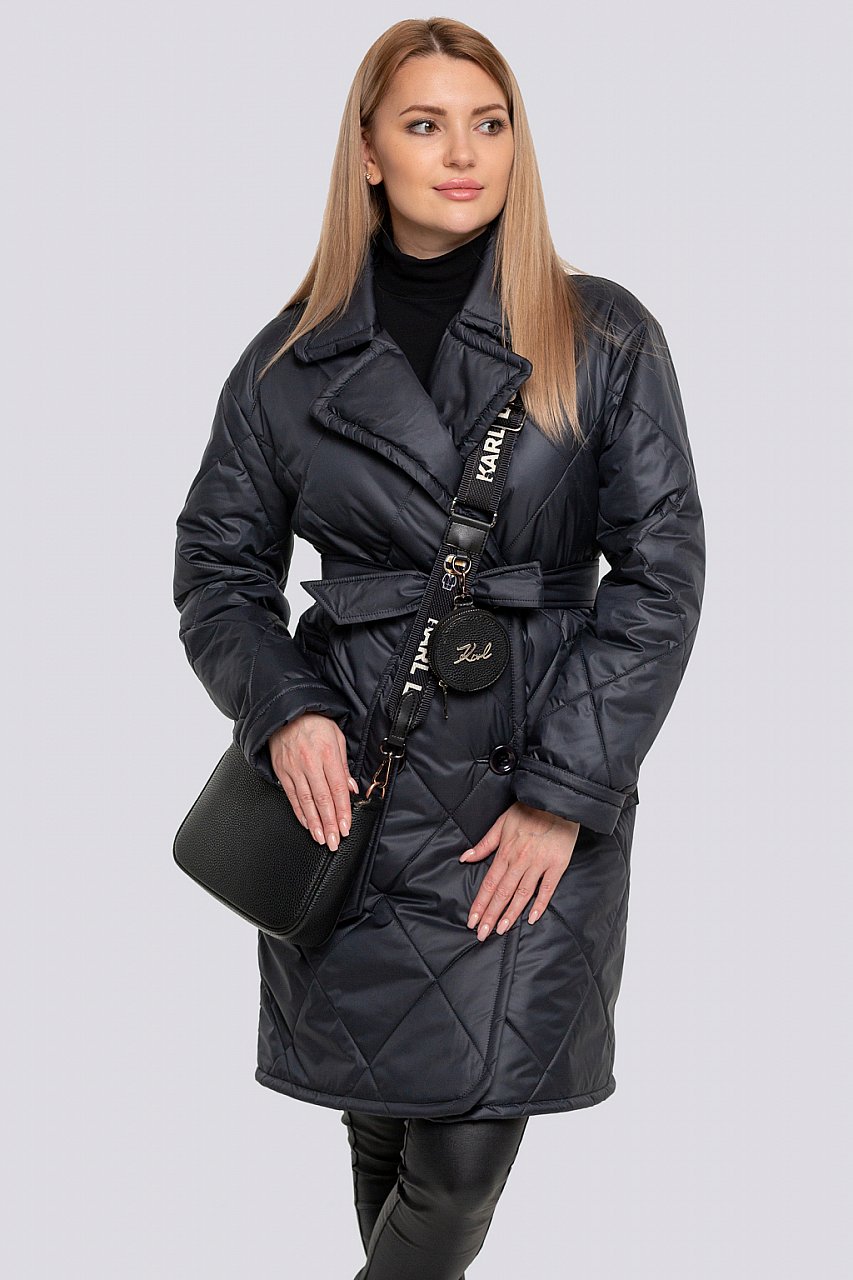 Весна – отличное время, чтобы подобрать новые варианты верхней одежды в более облегченном варианте. Укороченное пальто свободного объема с крупной стежкой «ромб» - отличный вариант для весеннего аутфита. Рукав рубашечный со спущенным плечом, длина рукава регулируется. На переде карманы с листочками. Пальто двубортное , с лацканами. Застежка на пуговицы. По краю лацканов, бортов, низа рукавов и листочек широкая декоративная строчка. Есть пояс. Утеплитель термофин, плотность 100. черно-синий