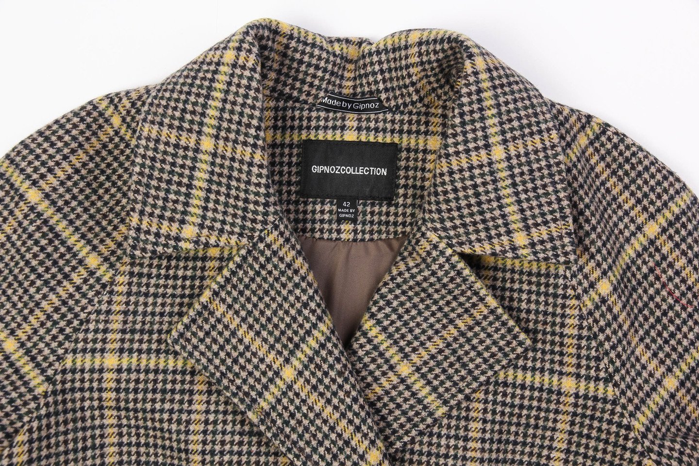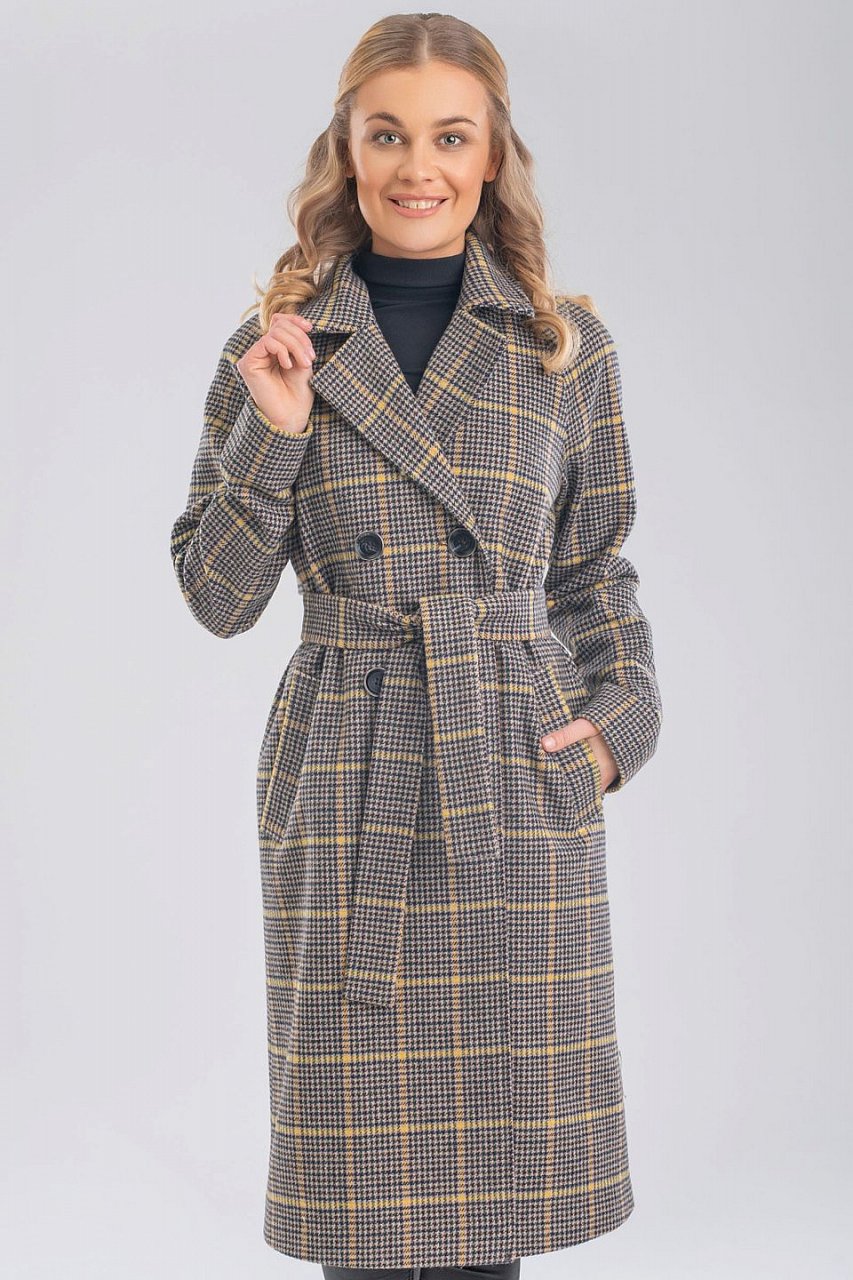 В последнее время клетчатый принт стал очень популярен в оформлении предметов гардероба, в том числе, пальто. Модели с таким принтом смотрятся очень женственно и привлекательно. Как правило, их выбирают девушки, которым не нравится однотонная верхняя одежда. Пальто двубортное на пуговицах. Рукава реглан, карманы с листочками. Состав драпа: 50% шерсть, 50% полиэстер. желтая клетка без лампас