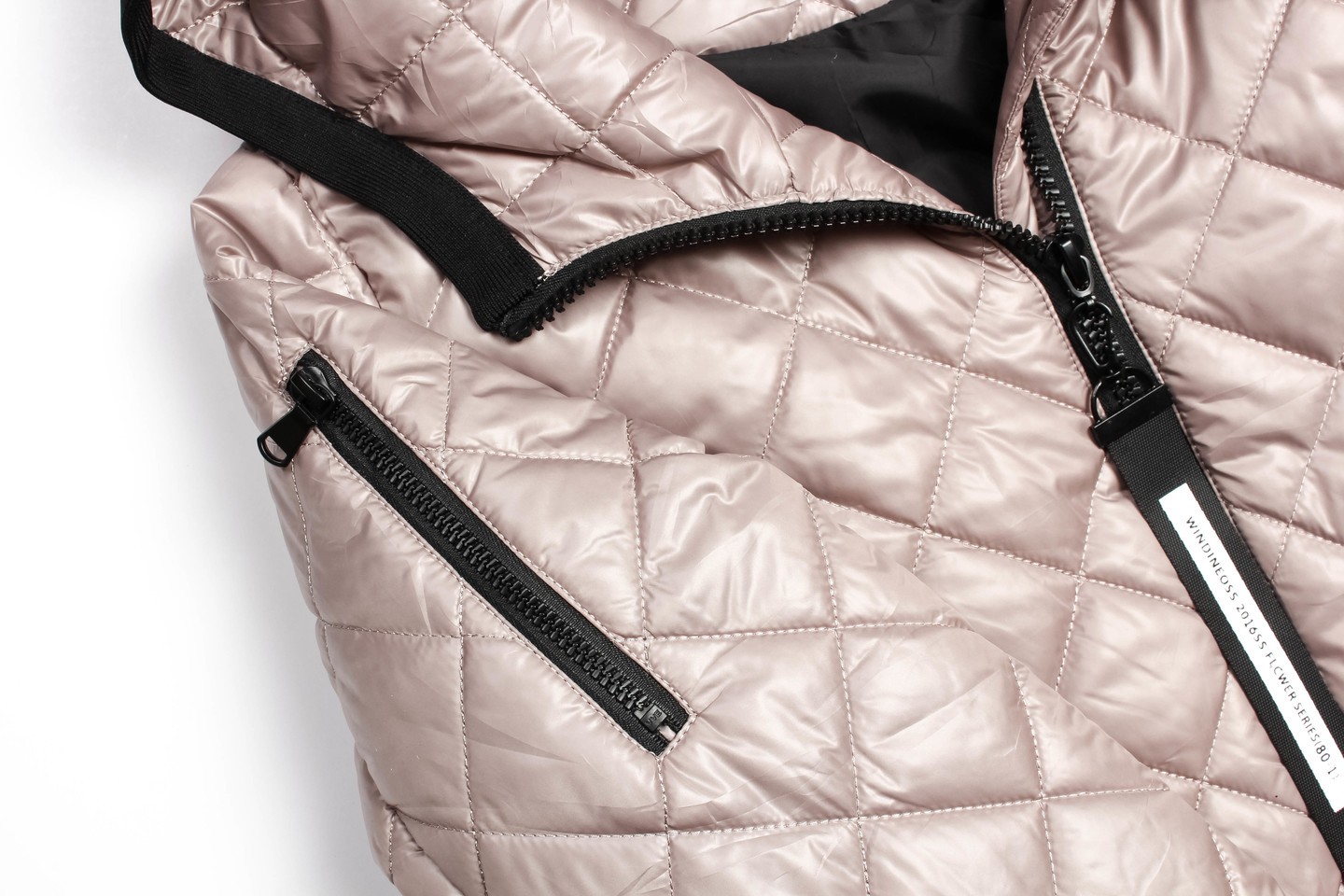 Пальто с утеплителем термофин – один из самых удачных стильных выборов на весенний период для ежедневной носки. Преимуществом этой верхней одежды является ее легкость и практичность. Универсальный хит –женское стеганое пальто с капюшоном из блестящей плащевой ткани. Пальто прямого силуэта с ромбовидной стежкой. Центральная застежка на молнию, прорезные удобные карманы. Отделка трикотажной бейкой смотрится очень эффектно. Утеплитель термофин, плотность 160. кремовый
