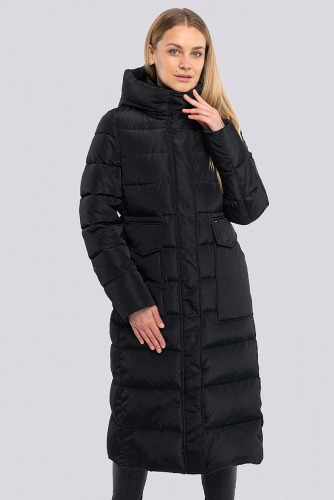 Модный и стильный женский пуховик уже давно стал неотъемлемой частью гардероба на холодное время года. Универсальный хит – женское стеганое пальто с капюшоном. Пальто прямого силуэта с прямой стежкой. Центральная застежка на молнию, закрыта планкой на кнопках. На переде - накладные карманы с клапанами, на кнопках. Внутри, по низу рукава трикотажные манжеты. В качестве утеплителя мягкий и практичный синтепух - синтетический пух. На подкладке дополнительный слой утеплителя - термофин, плотность 100.Температурный режим до -30. графит