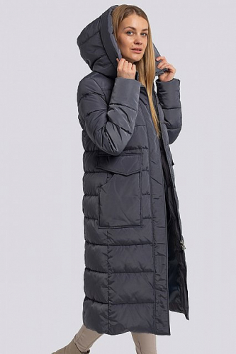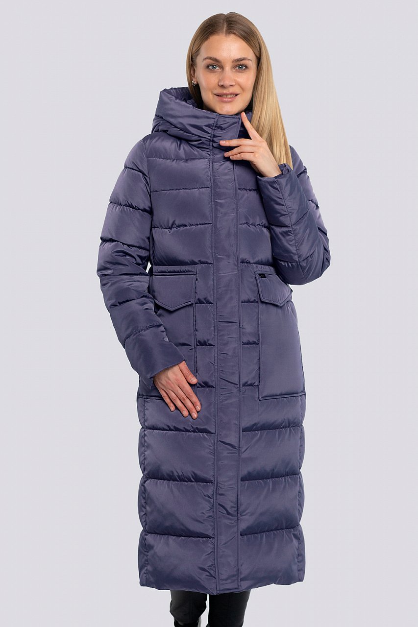 Модный и стильный женский пуховик уже давно стал неотъемлемой частью гардероба на холодное время года. Универсальный хит – женское стеганое пальто с капюшоном. Пальто прямого силуэта с прямой стежкой. Центральная застежка на молнию, закрыта планкой на кнопках. На переде - накладные карманы с клапанами, на кнопках. Внутри, по низу рукава трикотажные манжеты. В качестве утеплителя мягкий и практичный синтепух - синтетический пух. На подкладке дополнительный слой утеплителя - термофин, плотность 100.Температурный режим до -30. ежевика