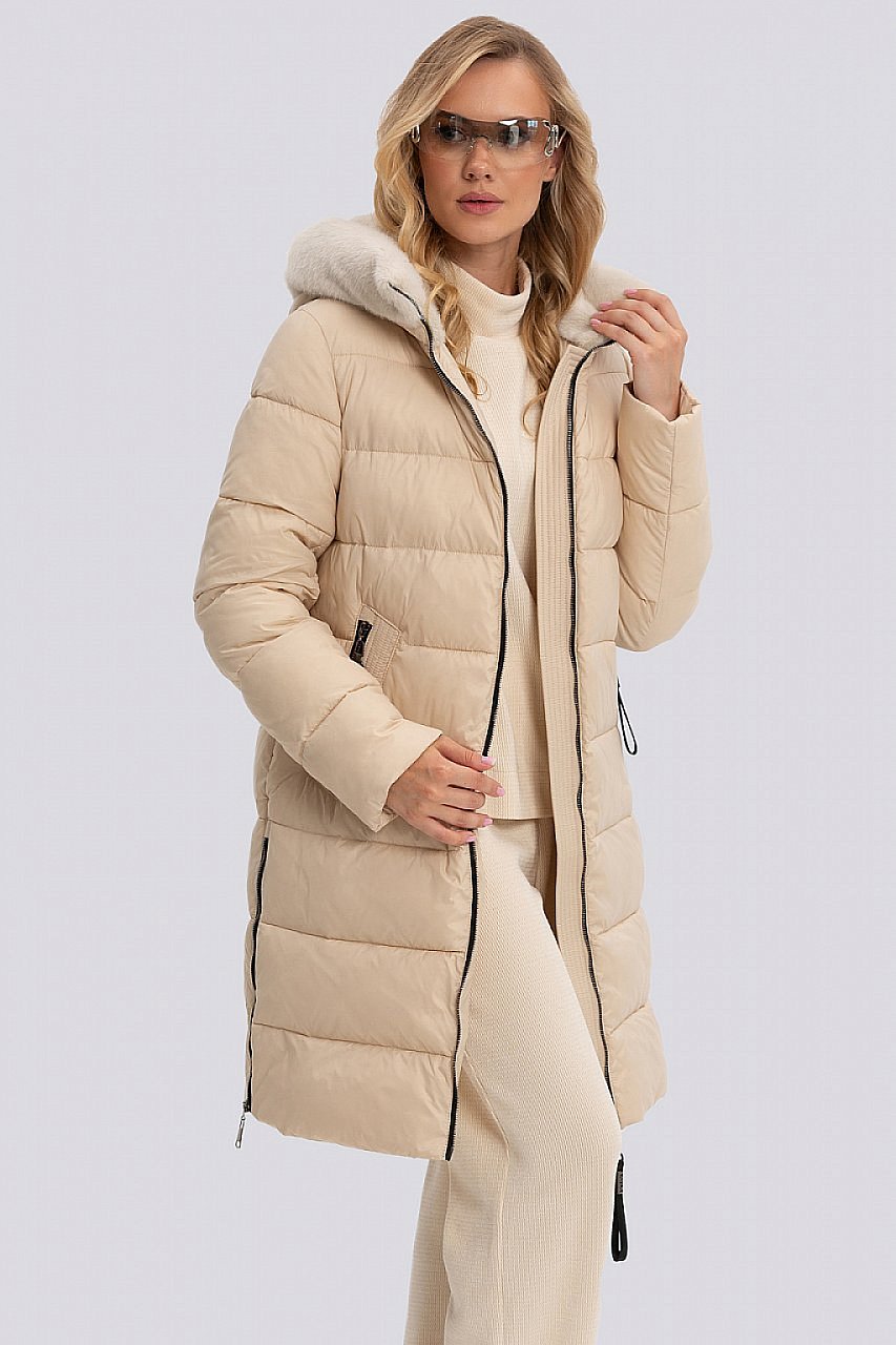 Почувствуйте настоящее тепло и уют в этом стильном женском пуховике! Его средний объем и прямая строчка создают элегантный и не громоздкий силуэт. Слегка спущенное плечо и втачной рукав дарят свободу движений, а внутренняя резинка на манжетах надежно защищает от проникновения холодного воздуха. Практичная молния спереди и карманы на молнии с аккуратной листочкой – все продумано для вашего удобства. А как же без изюминки? Декоративные молнии по бокам добавляют образу динамичности. Но главная прелесть – это капюшон! Он настолько комфортный благодаря мягкой искусственной норке внутри, что вы сможете смело отказаться от шапки, наслаждаясь теплом и стильным видом даже в самую холодную погоду. Небольшой отворот капюшона добавляет уюта и завершает образ. Утеплитель синтепух, плотность 250г/м + дополнительный слой термофин на подкладке 60г/м. Температурный режим до -25. молочный