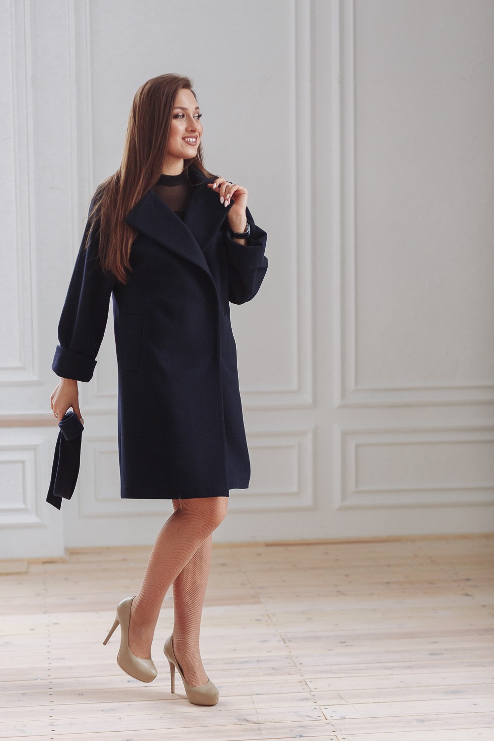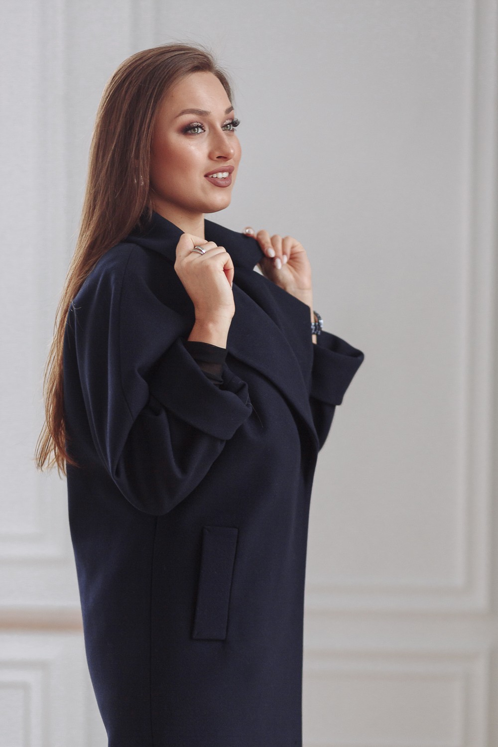 Пальто прямого силуэта, с рукавом покроя "кимоно".
