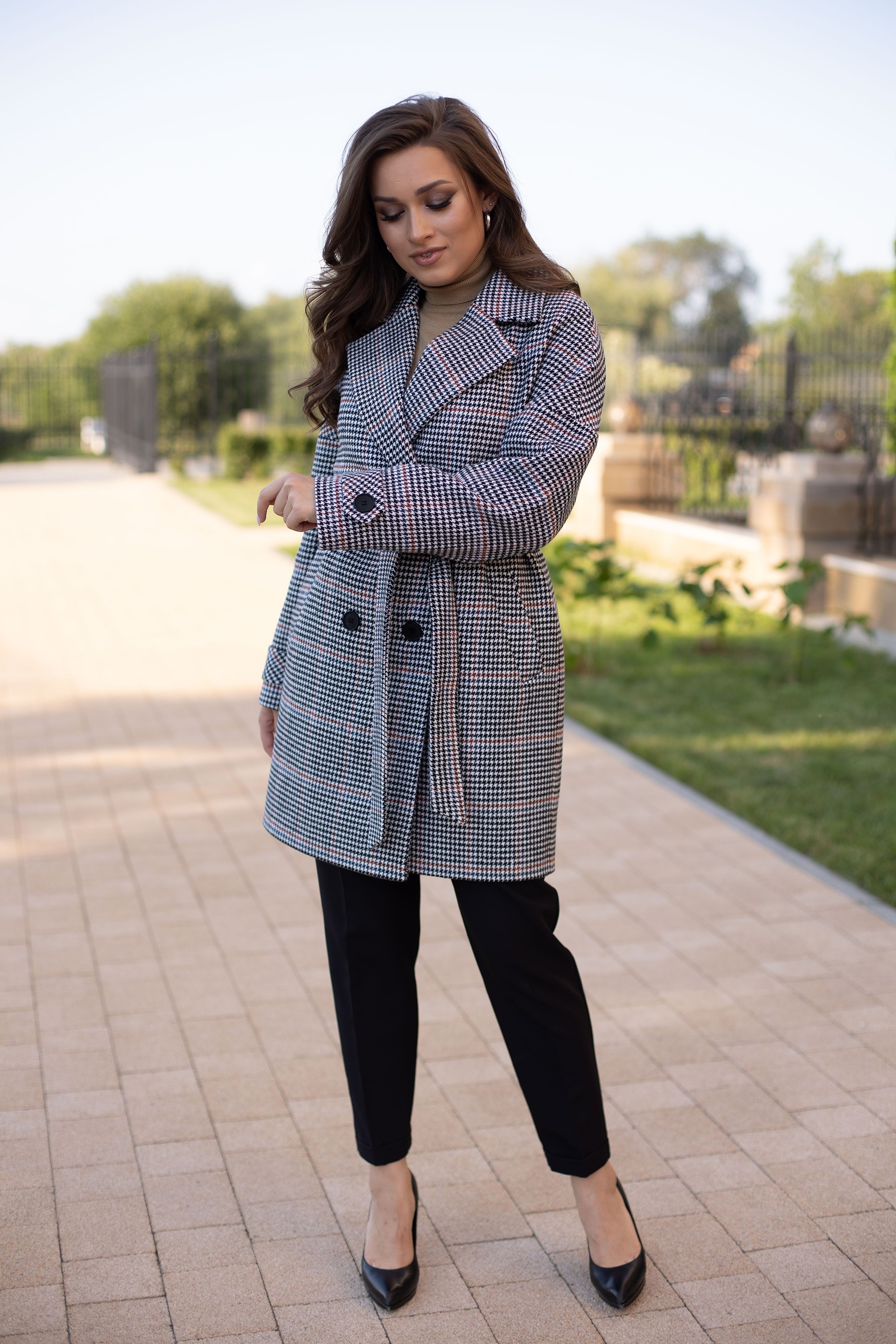 Пальто женское демисезонное 22970 (клетка britny)