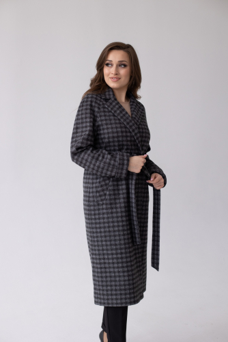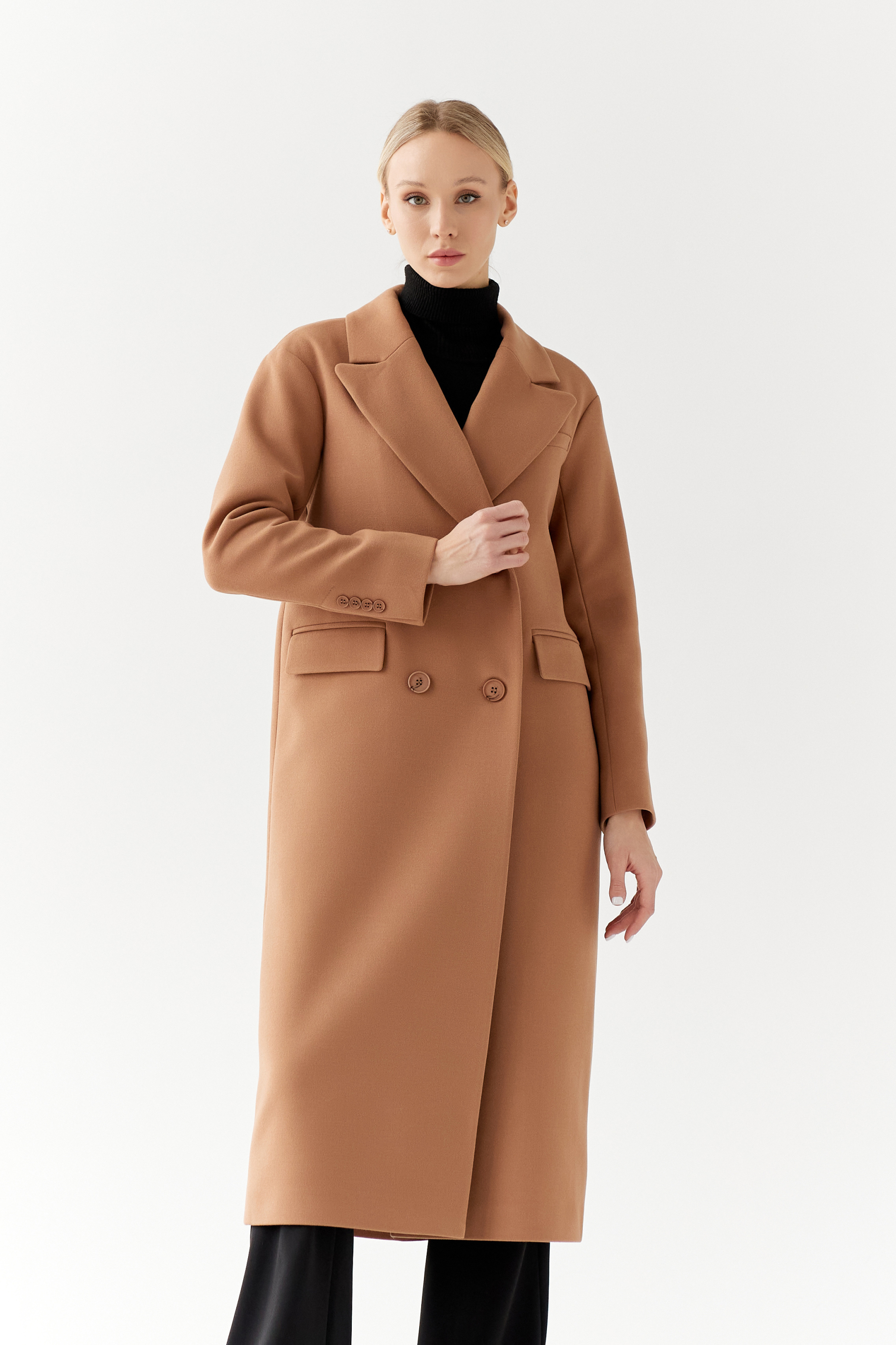 Двубортное пальто с мужским силуэтом и дополнительным объемом в плечах