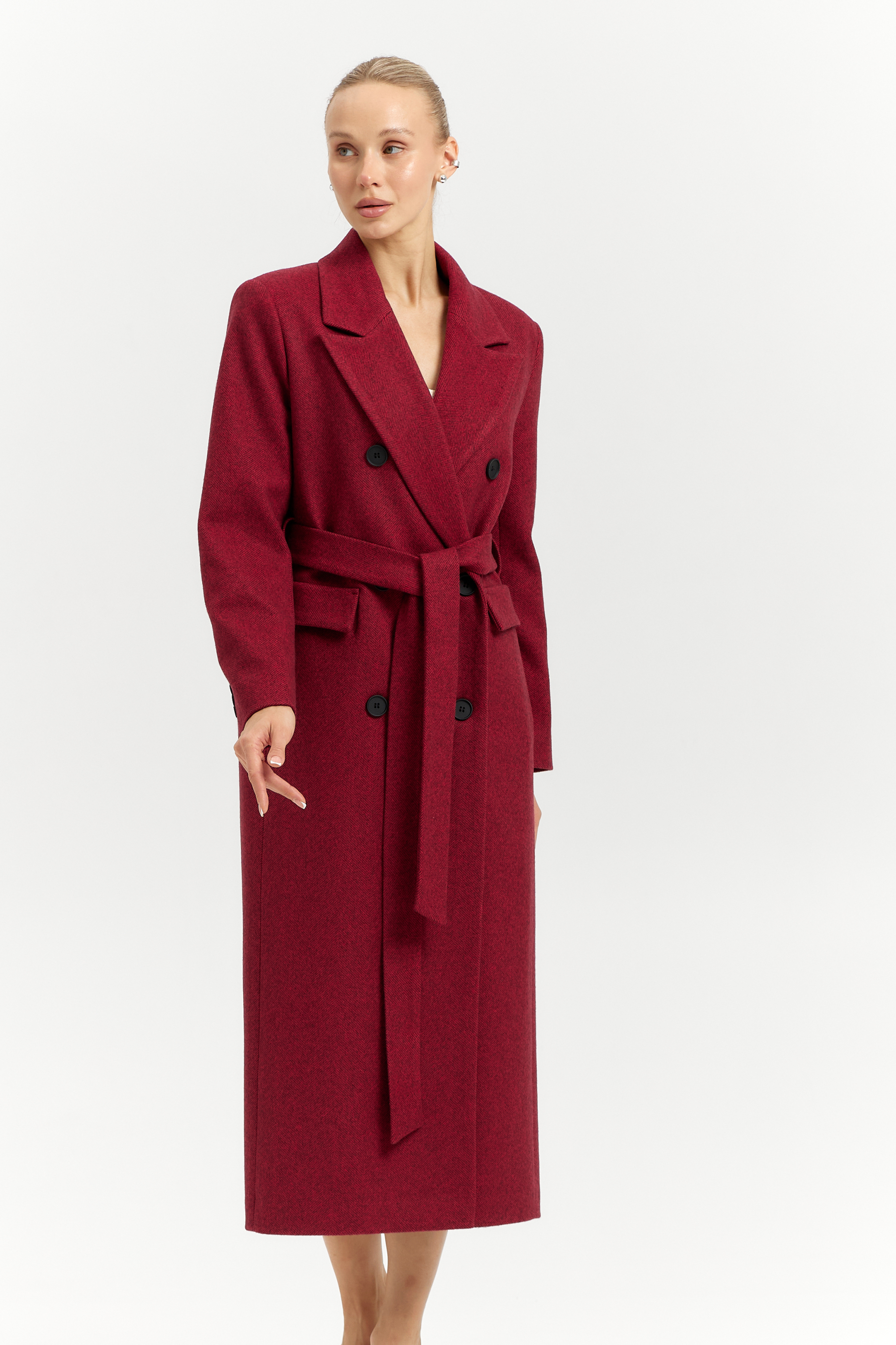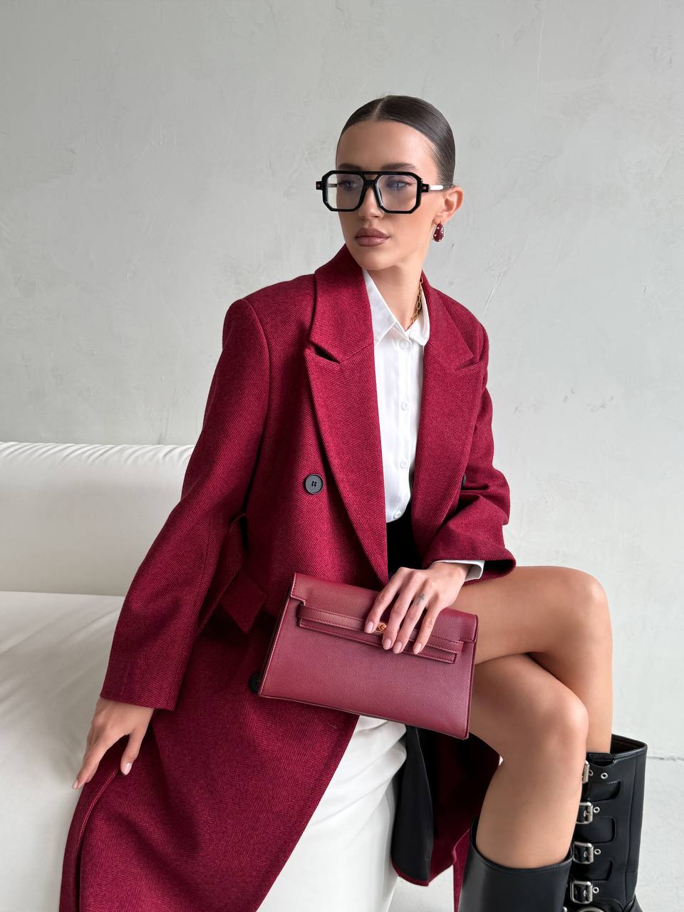 Пальто женское демисезонное 26326 (бордовый/ёлочка)