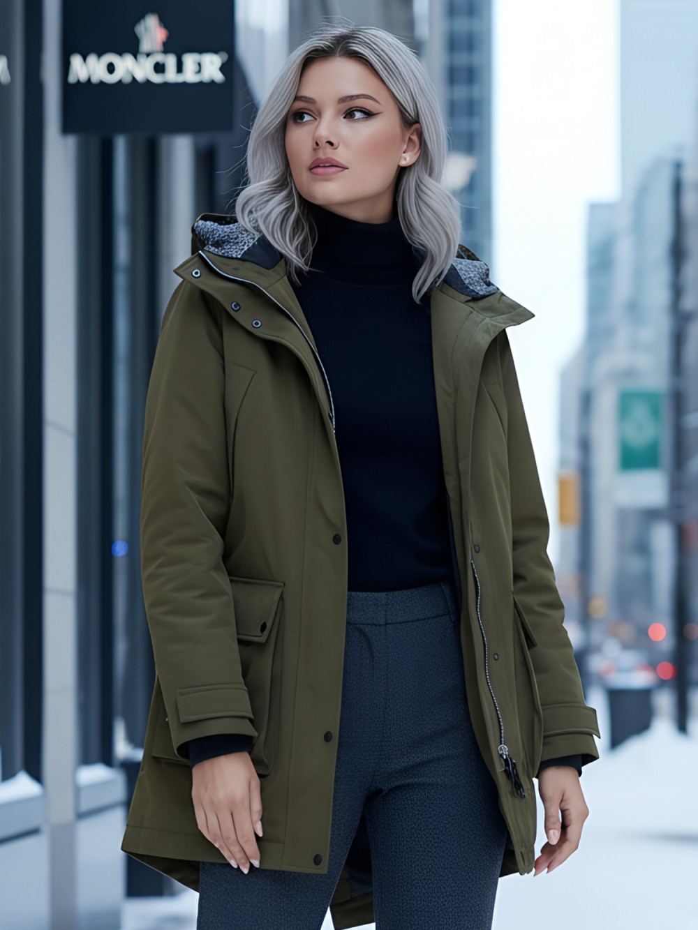 Парка женская зимняя MTFORCE c капюшоном цвета хаки 2329Kh