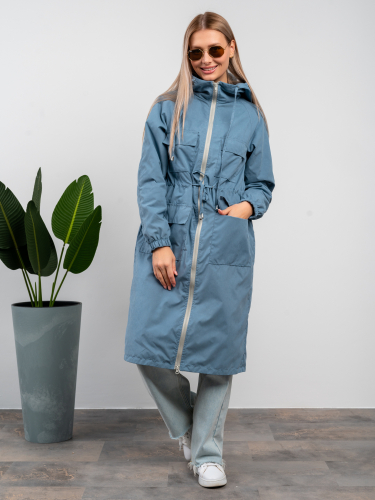 Легкая ветровка с капюшоном. Кулиска по талии позволяет регулировать посадку. Модель дополнена двумя накладными карманами на молнии.