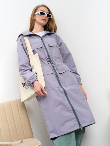 Легкая ветровка с капюшоном. Кулиска по талии позволяет регулировать посадку. Модель дополнена двумя накладными карманами на молнии.