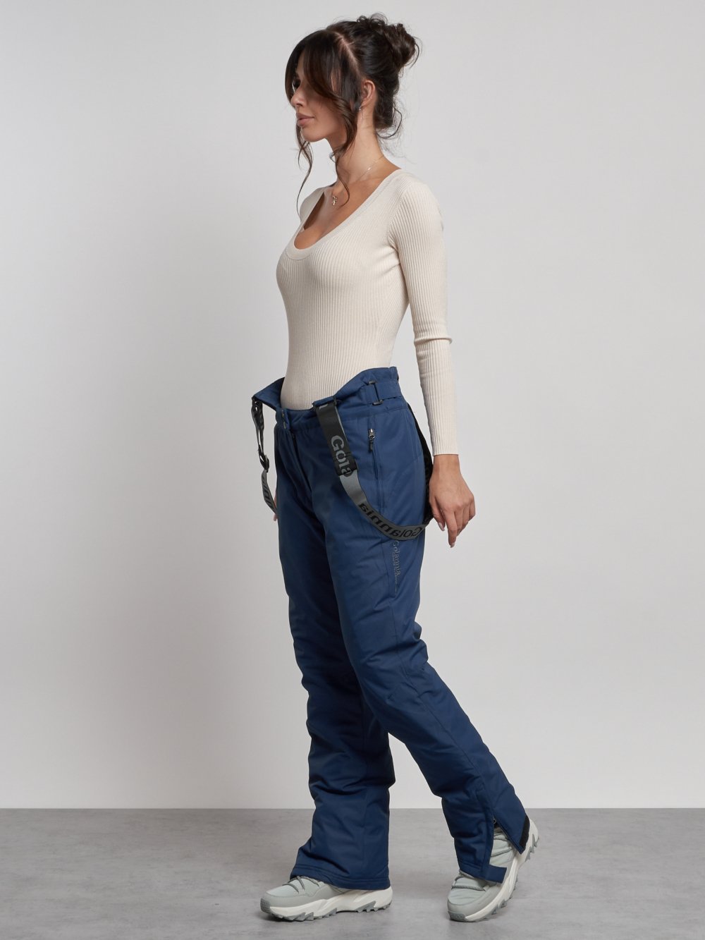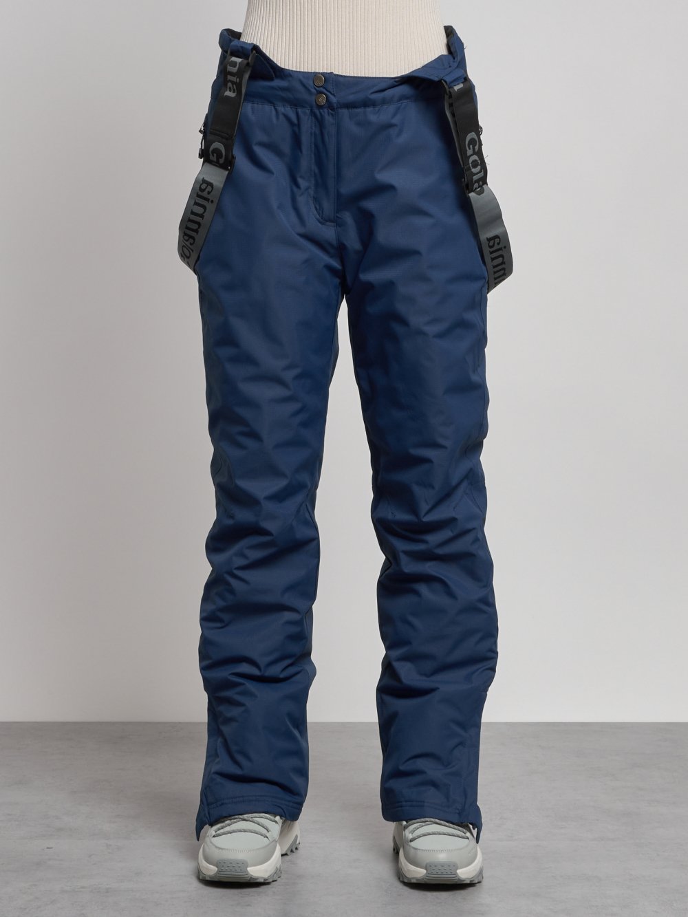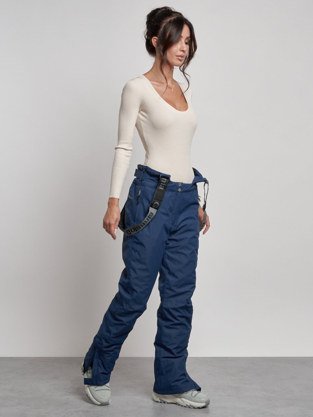 Полукомбинезон утепленный женский зимний горнолыжный темно-синего цвета 7601TS