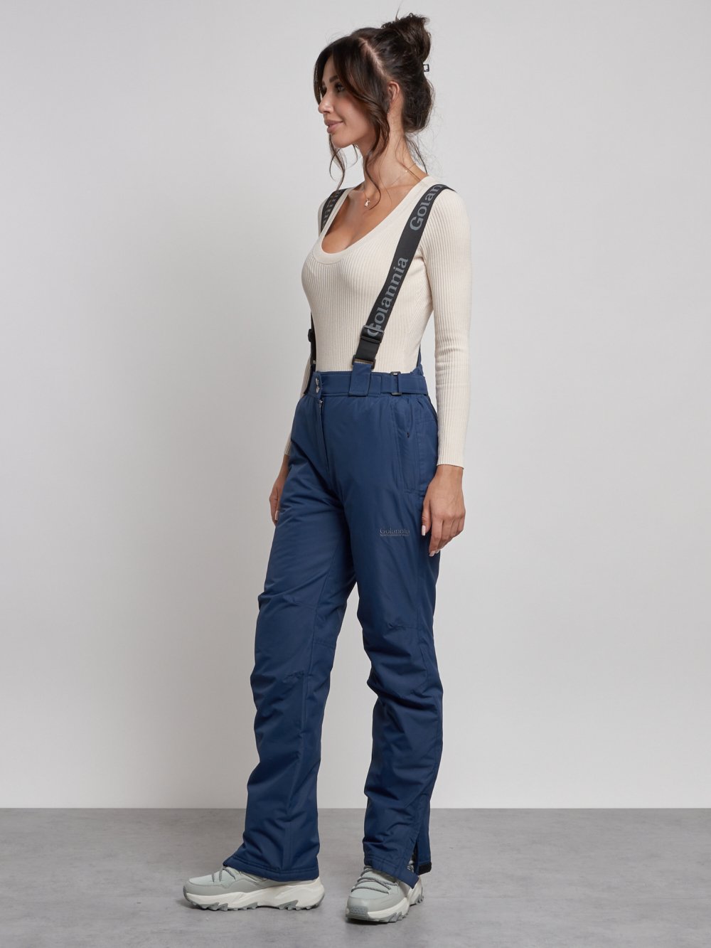 Полукомбинезон утепленный женский зимний горнолыжный темно-синего цвета 7602TS