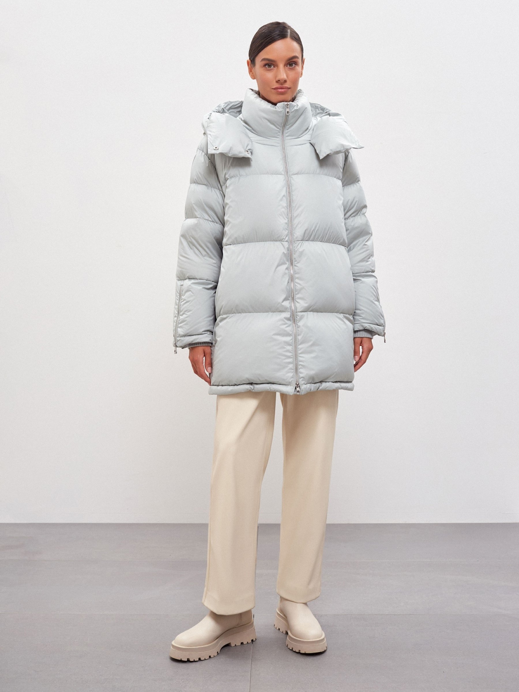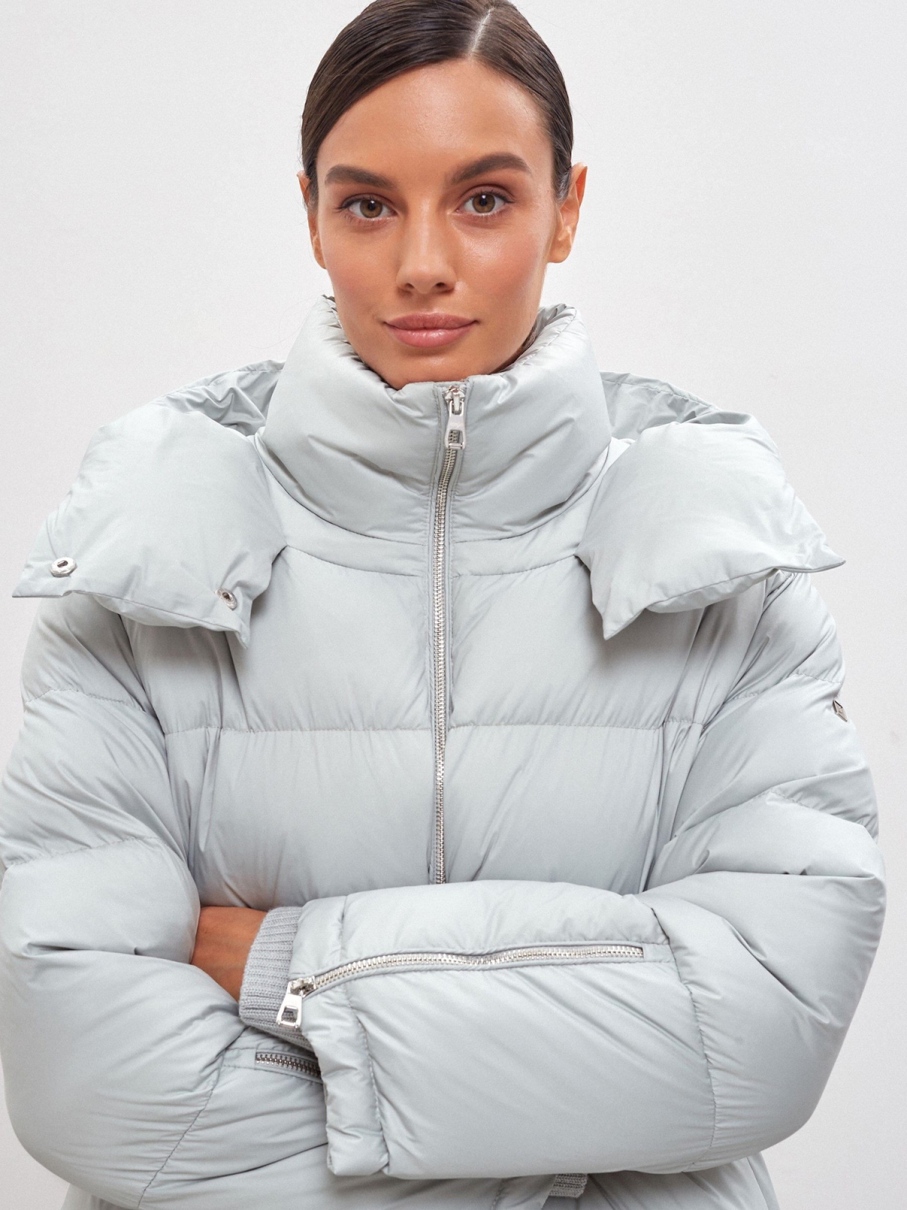 Объемная пуховая куртка свободного кроя. Силуэт оверсайз отвечает за комфорт, а кулиска по нижнему борту изделия и боковые потайные карманы делают модель практичнее. Модель дополнена акцентными рукавами с широкими трикотажными манжетами и молниями по бокам, а также высоким воротником-стойкой и объемным капюшоном. Куртка представлена в трендовых благородных цветах:menthol, lilac mist, milk. Универсальный стиль модели позволяет сочетать ее с любыми образами. Например, Вы можете дополнить ее трикотажным платьем и высокими сапогами на шнуровке в стиле милитари, чтобы создать дерзкий ультрамодный образ.