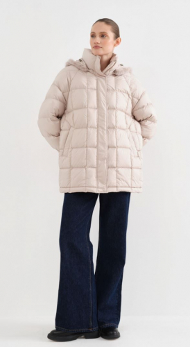 Классическая городская куртка в минималистичном концепте, но с интересной деталью. Модель украшает изящный капюшон из меха норки, напоминающий легкое пушистое кружево. Накиньте вместо шапки – и точно не замерзнете. Еще отметим модную квадратную стежку, добавляющую звучанию куртки современные ноты. Для легкости и тепла выбрана плотная непродуваемая ткань с водоотталкивающей пропиткой и отборный гусиный пух и перо в качестве наполнителя. Высокий воротник-стойка и трикотажные манжеты – еще один уровень защиты от холода.