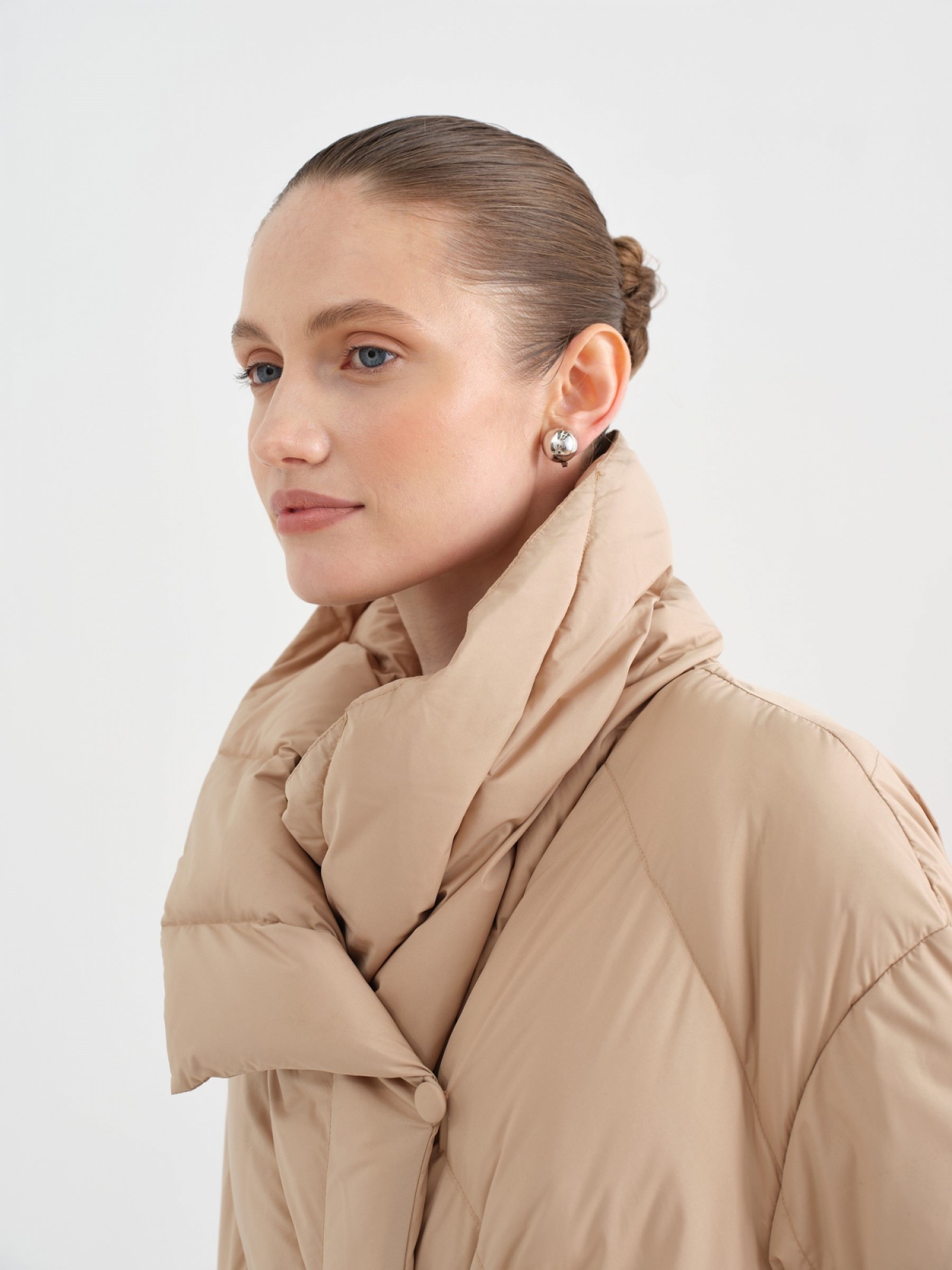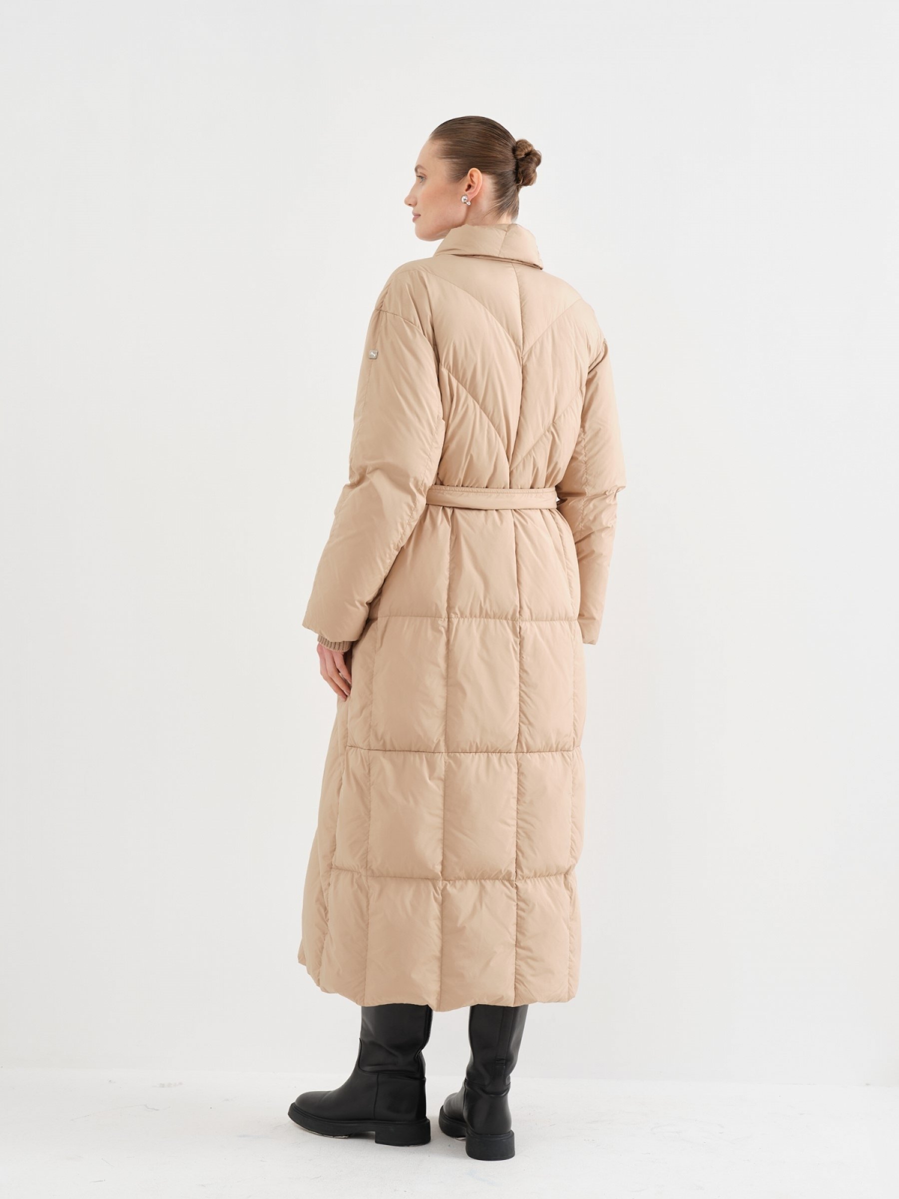 У этого пухового пальто миди-макси лаконичный прямой крой, при этом диагональное размещение пух-пакетов делает модель сложной и интересной. Заслуживает внимания и оригинальный отложной воротник. В расстегнутом виде станет стильной акцентной деталью, а в застегнутом заменит шарф. Пальто наполнено воздушным гусиным пухом и пером, рукава закрыты трикотажными манжетами, поэтому вы точно не замерзнете. В комплекте пояс, чтобы создать нужный силуэт.