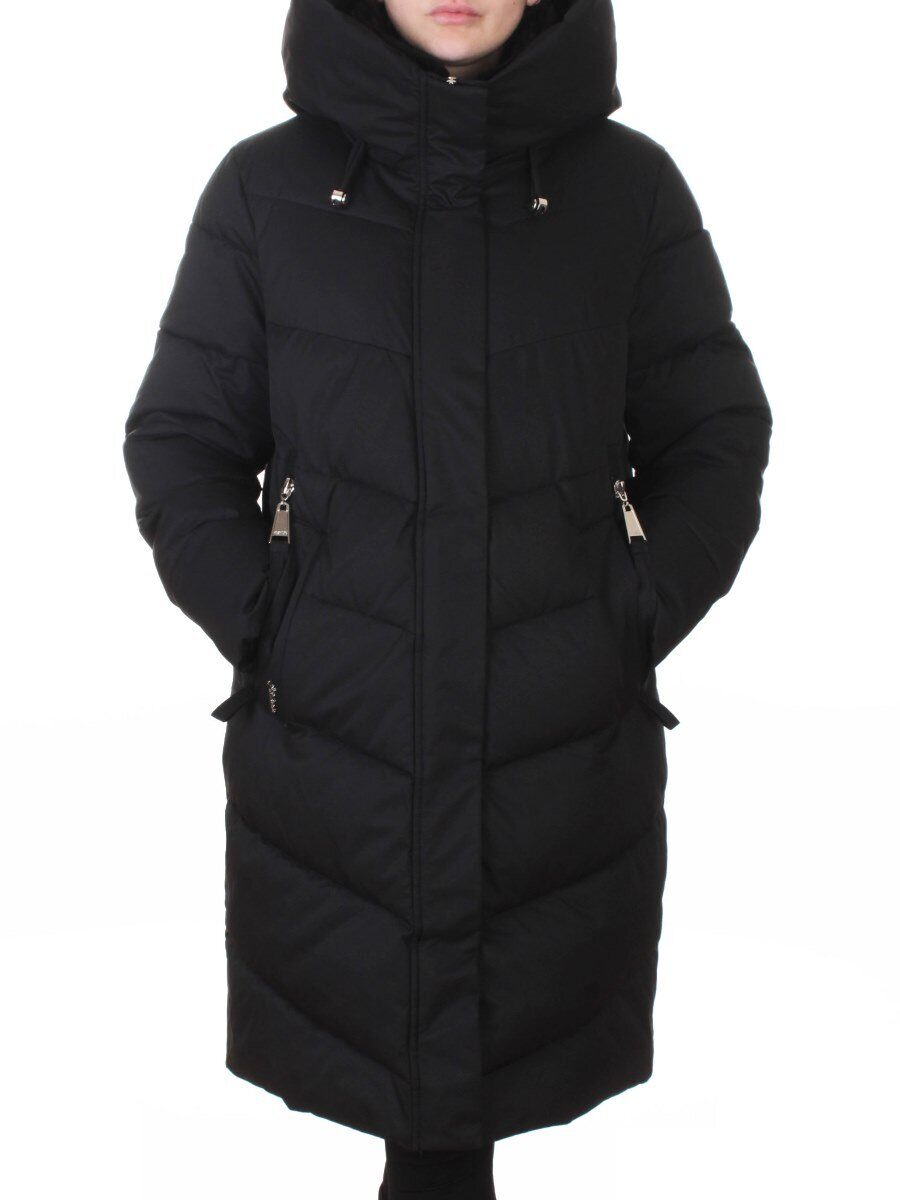 6605B BLACK Пальто зимнее женское (200 гр. холлофайбер)