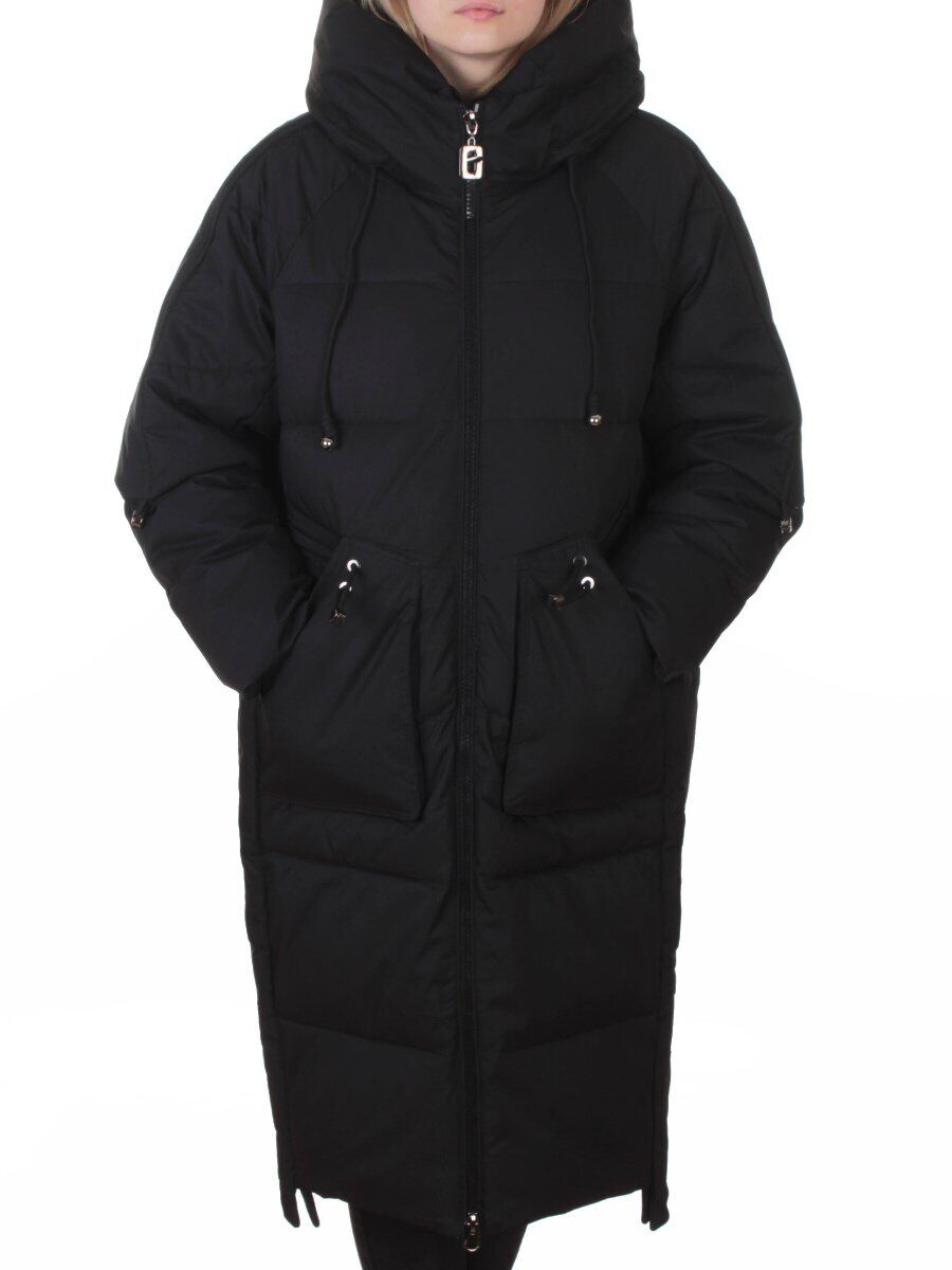 6615 BLACK Пальто зимнее женское (200 гр. холлофайбер)