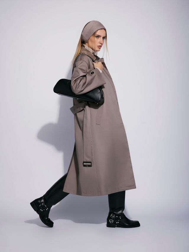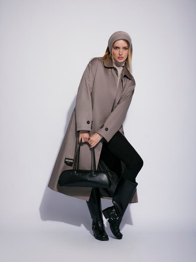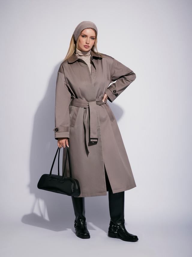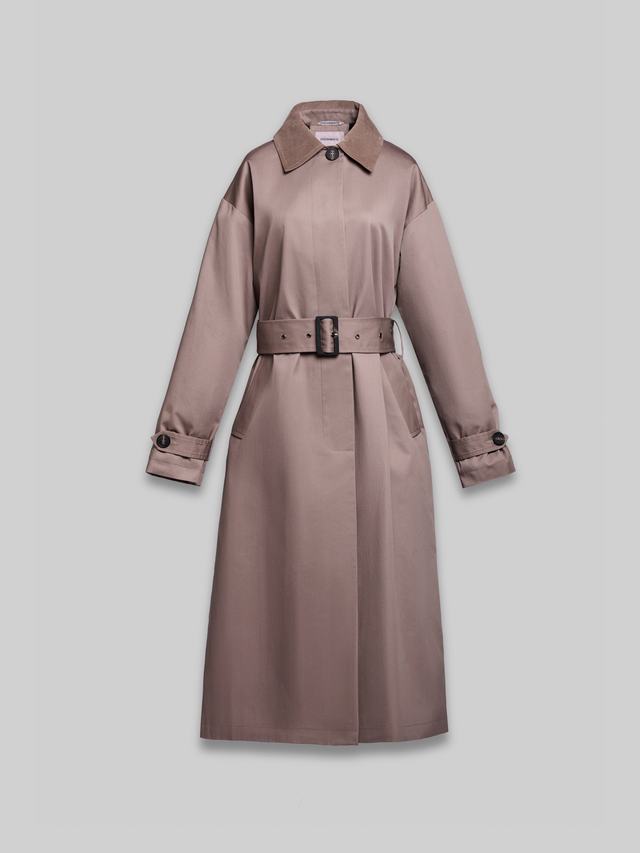 Плащ для ценителей минимализма! Сдержанные цвета, супатная застежка и вельветовый воротник — знаковые детали плаща. Паты на рукавах и пояс имеют брендированную фурнитуру.