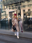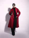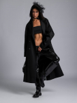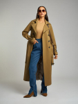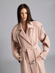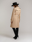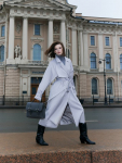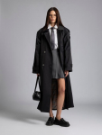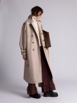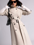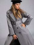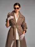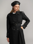 Прямой крой плаща и макси длина — 130 см, сделают вас визуально выше и худее. Двубортная модель обладает запоминающимся деталями: кокетка спереди и сзади, широкие лацканы, паты и эполеты с брендированной фурнитурой.
