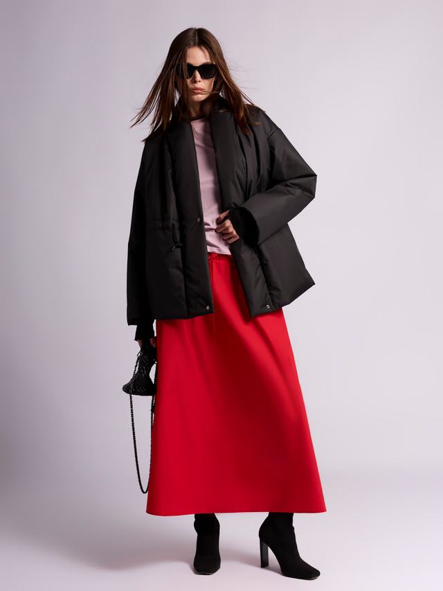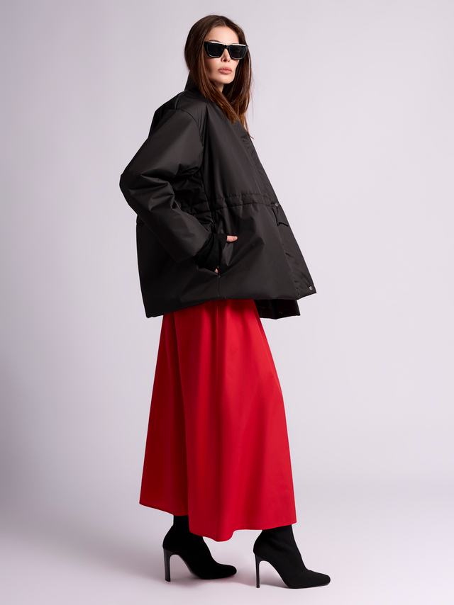 Сочетание утеплителя изософт и водооталкивающей пропитки позволяет строить планы несмотря на погоду. Благодаря спущенному плечу и оверсайз крою можно комфортно ность пиджаки и свитера. С помощью кулиски регулируйте силуэт от прямого до приталенного.
