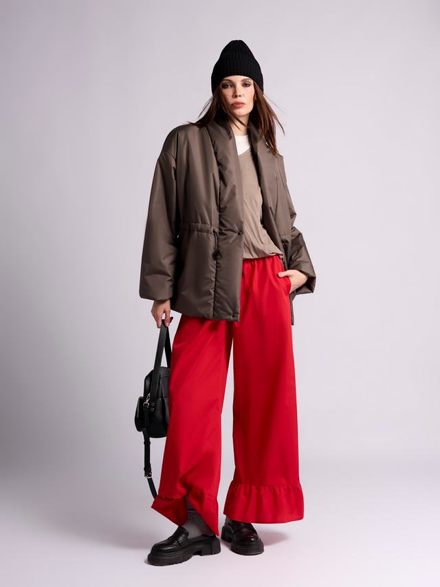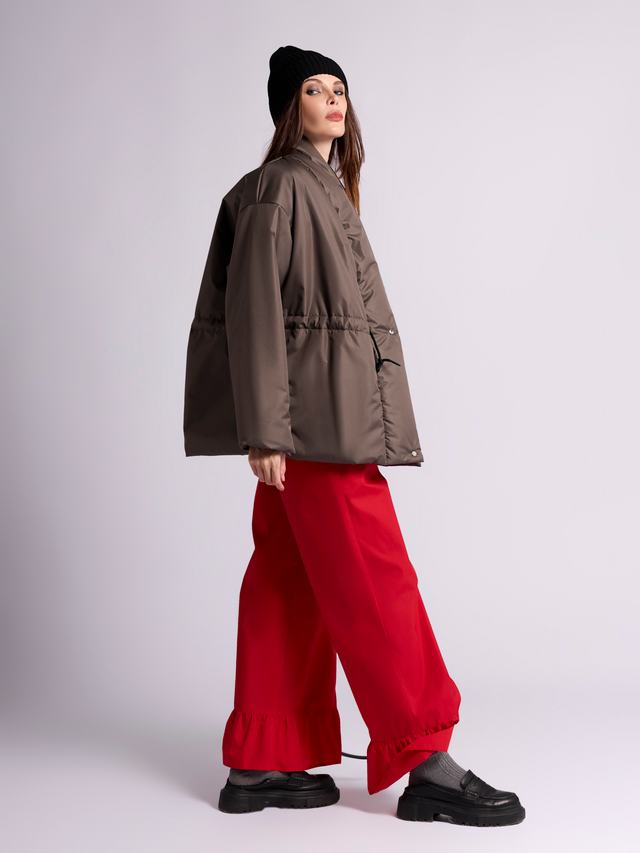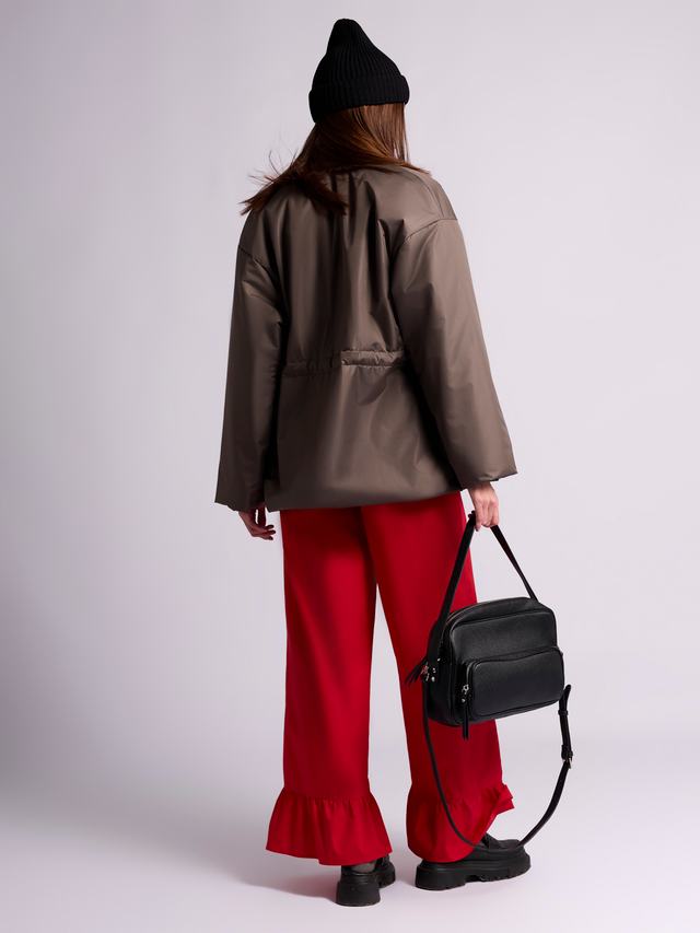 Сочетание утеплителя изософт и водооталкивающей пропитки позволяет строить планы несмотря на погоду. Благодаря спущенному плечу и оверсайз крою можно комфортно ность пиджаки и свитера. С помощью кулиски регулируйте силуэт от прямого до приталенного.