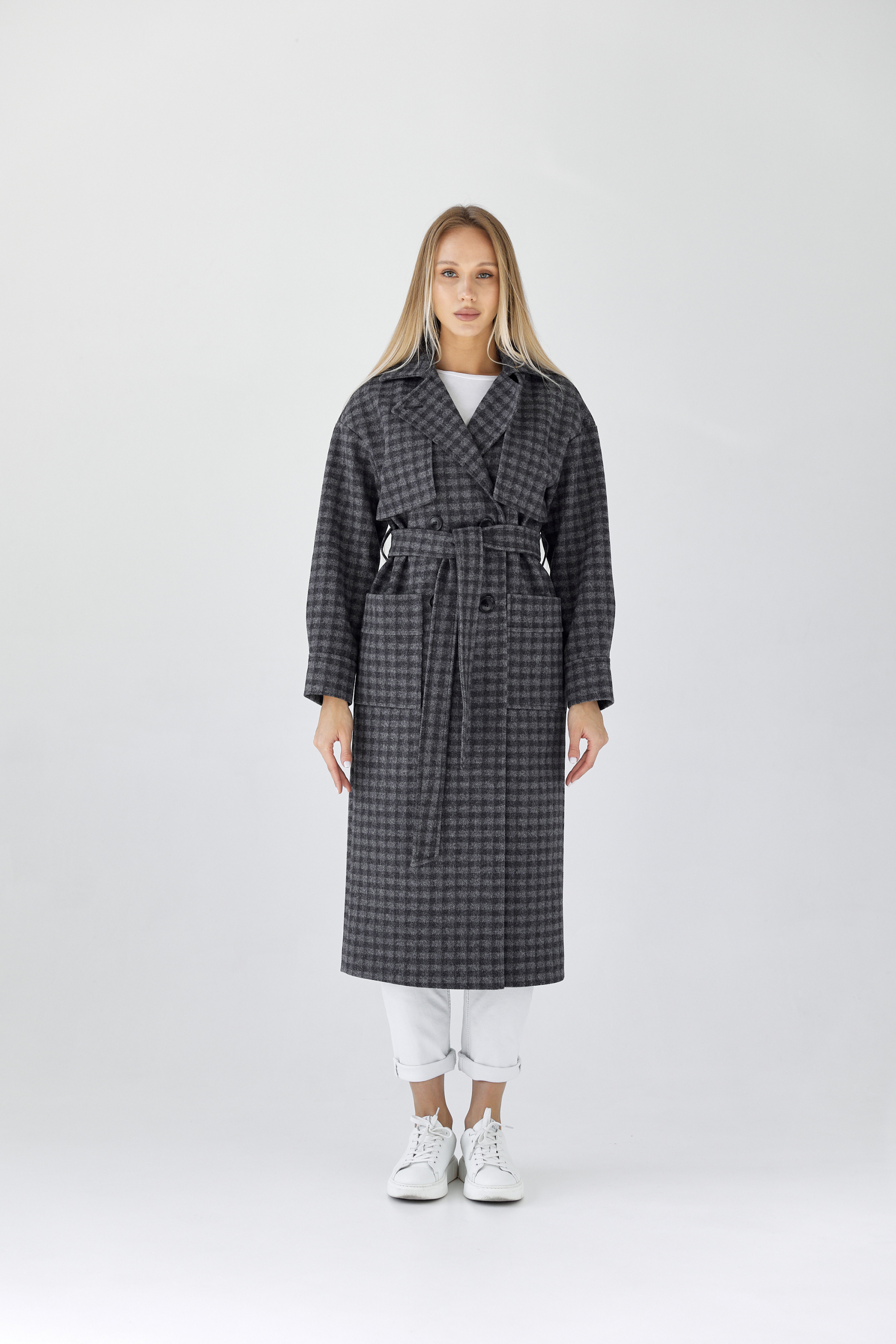 Ст.цена 4600р. Пальто женское демисезонное 25417 (черно-серый)