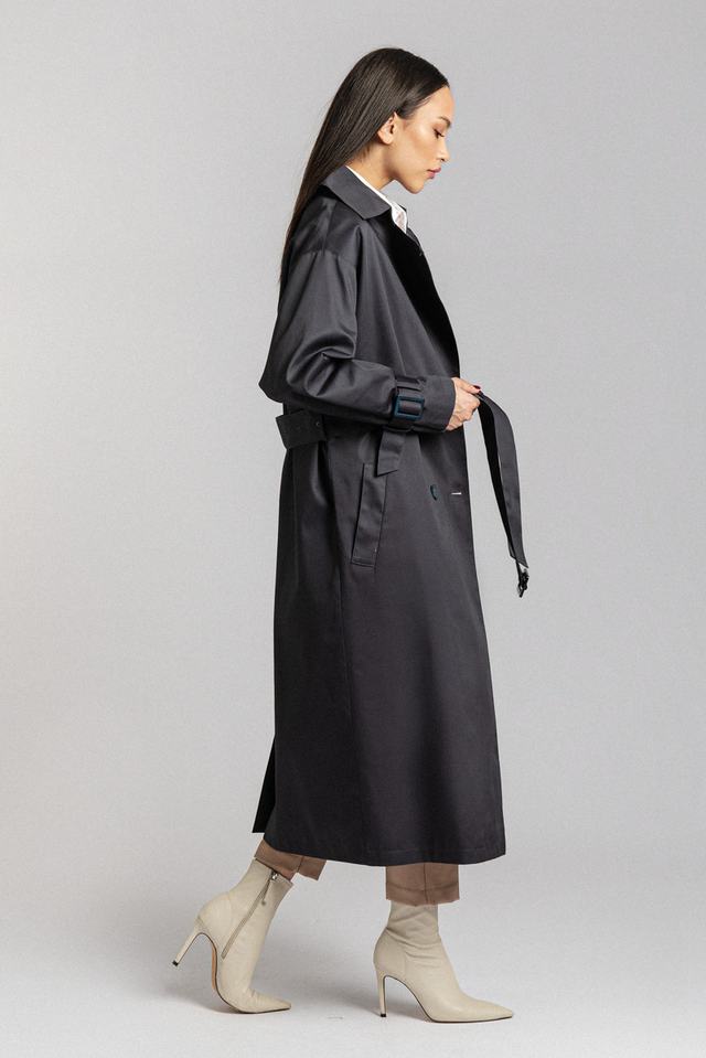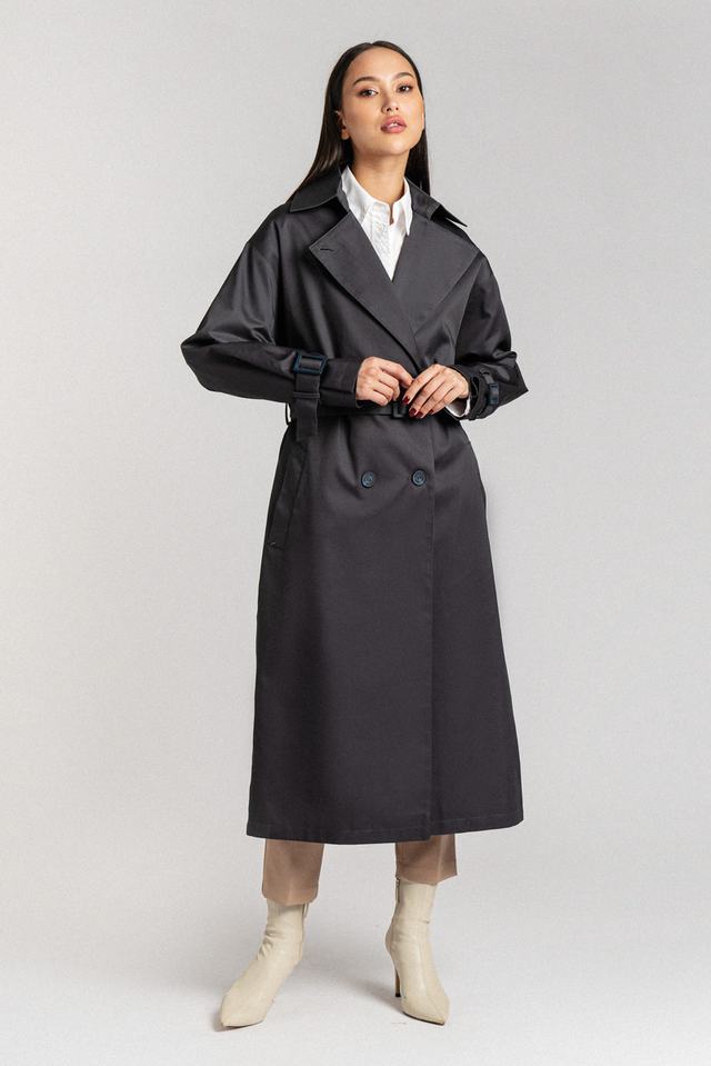 Наименование Ozon: Плащ женский тренчкот оверсайз длинный демисезонный мембранный для высоких- В001-12 (Темно-серый-8)