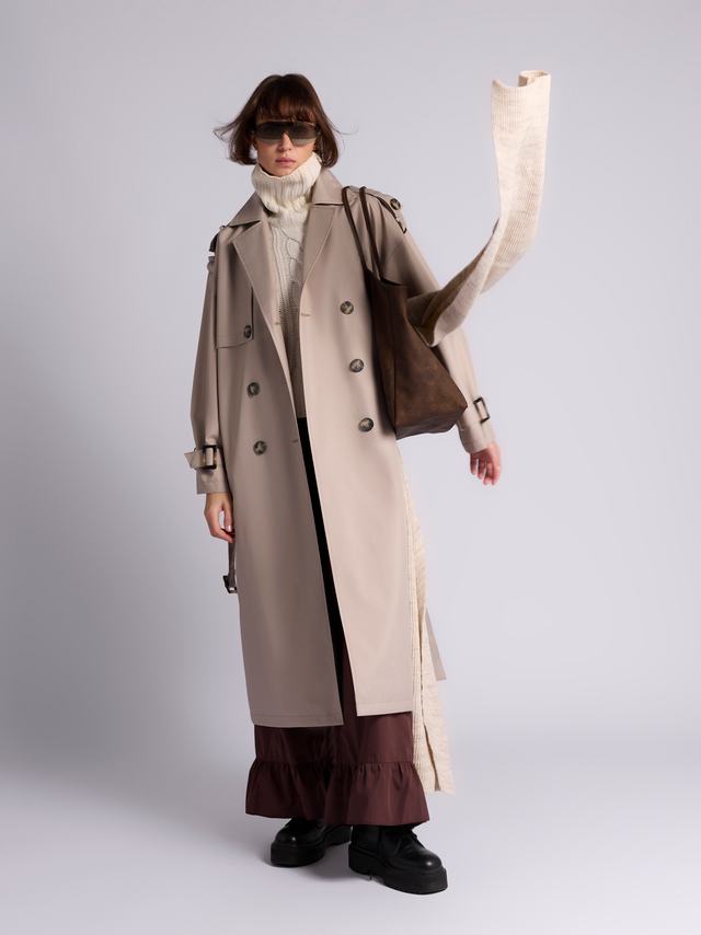 Наименование Ozon: Плащ женский тренчкот оверсайз длинный демисезонный для высоких- В014-12 (Бежевый 15-1114)
