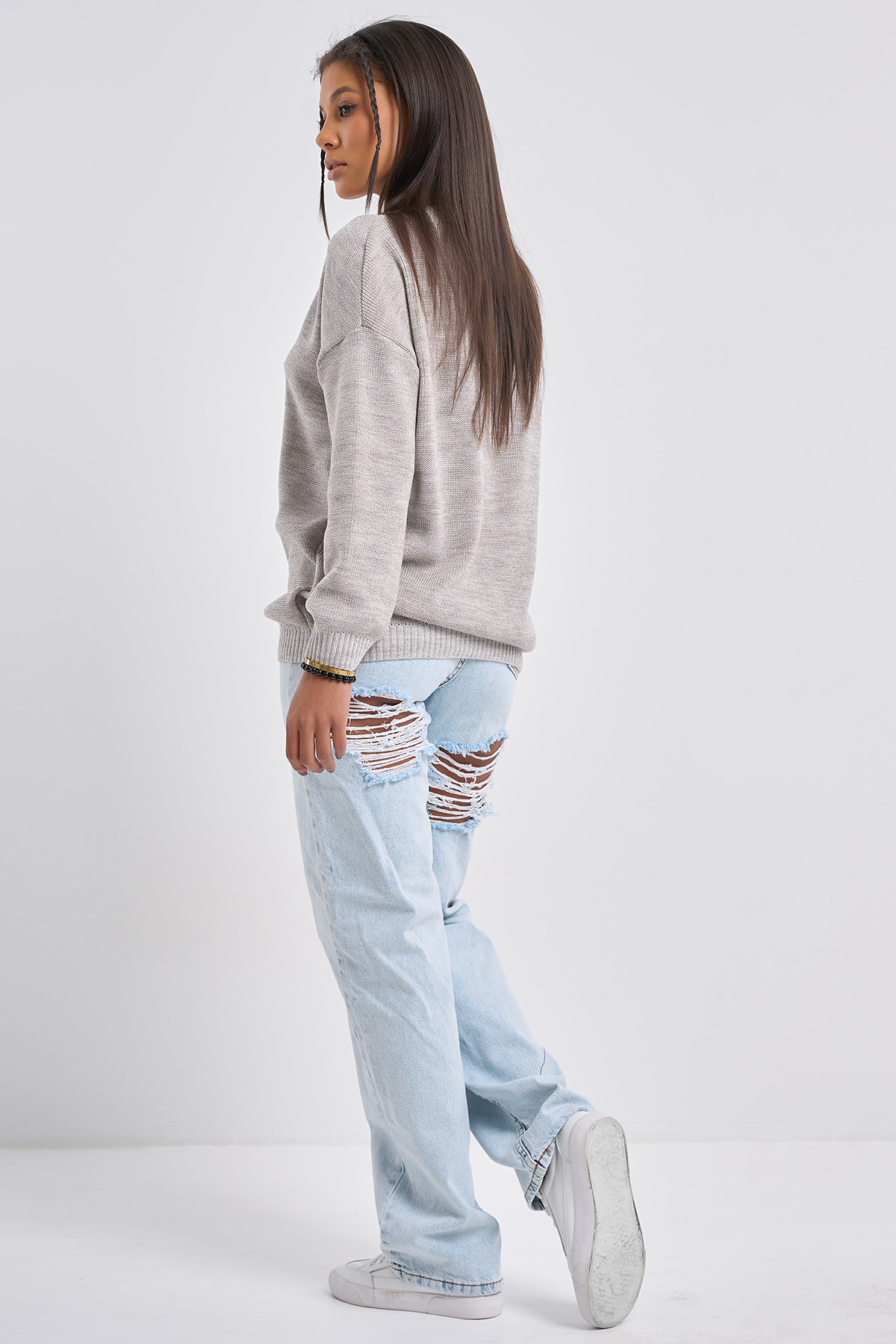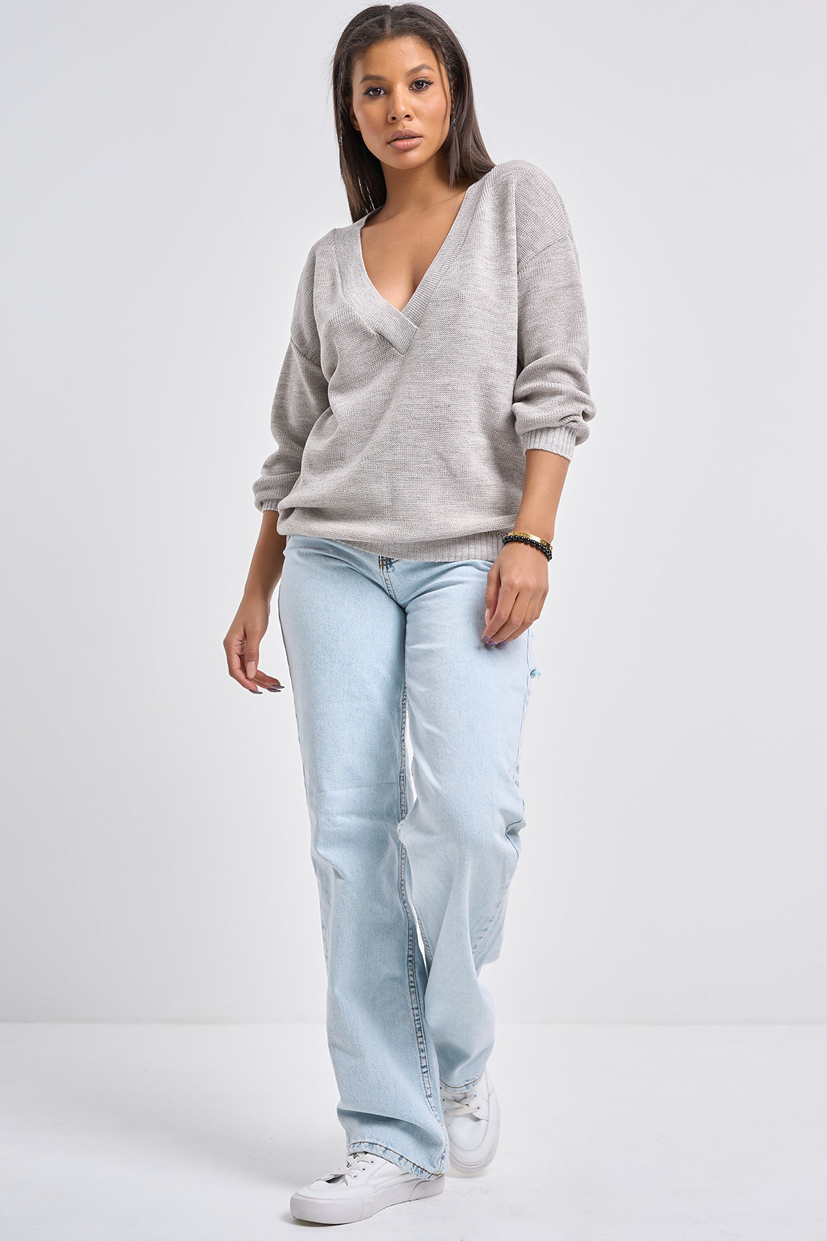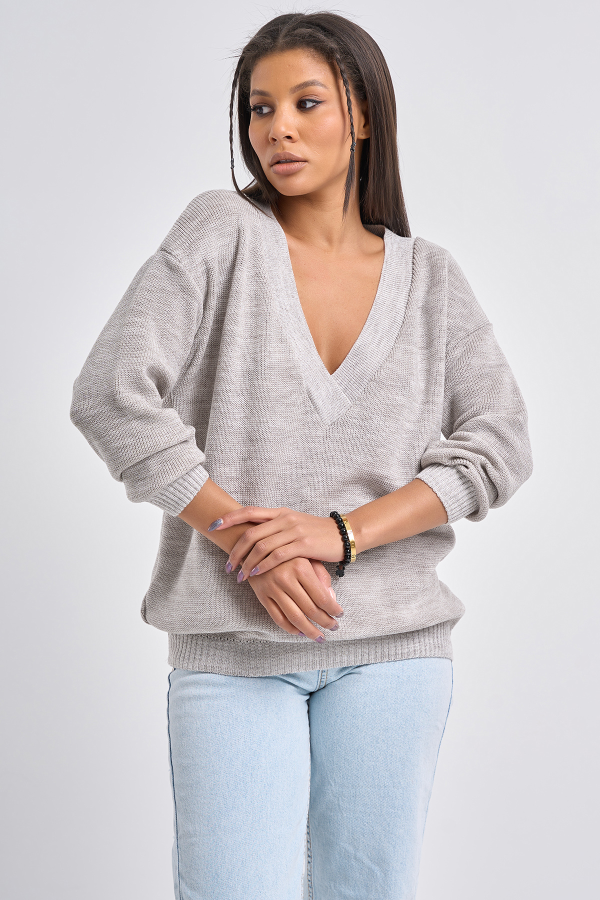 ст. цена1790руб.! Джемпер вязаный свободного силуэта серо-бежевый