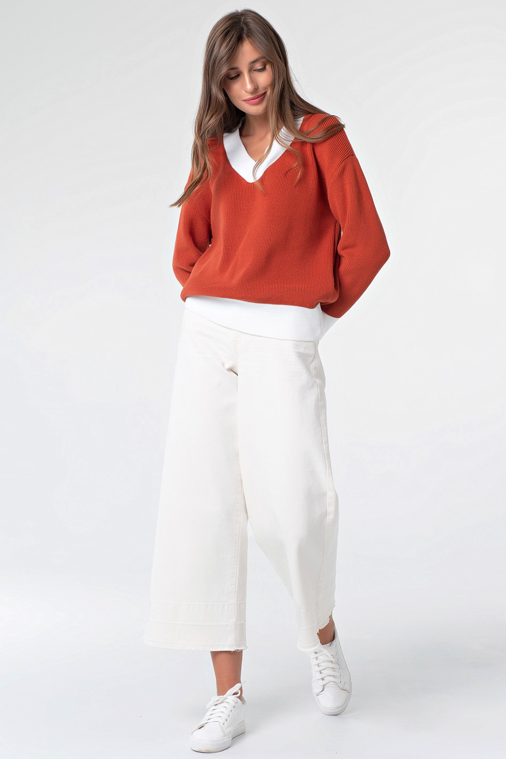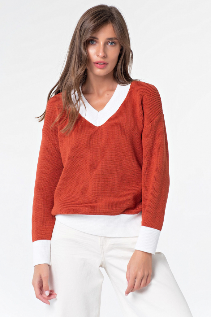 ст. цена1955руб.! Пуловер вязаный с v-вырезом терракотовый