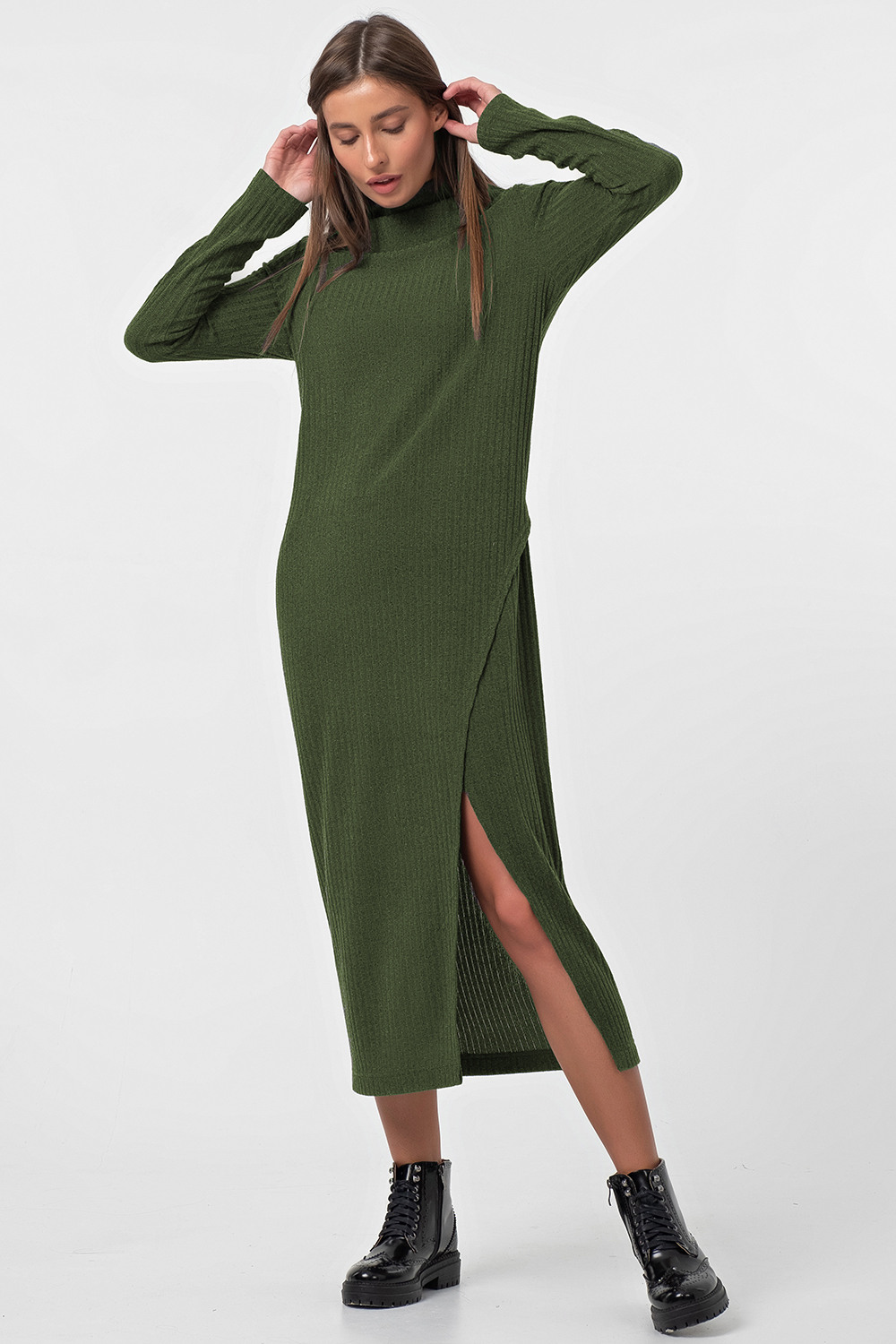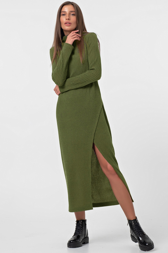 ст. цена2248руб.! Платье-лапша миди с запахом и разрезом по ноге хаки