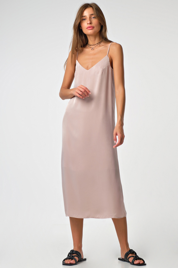 ст. цена2377руб.! Платье-комбинация шелковое миди на подкладке бежевое