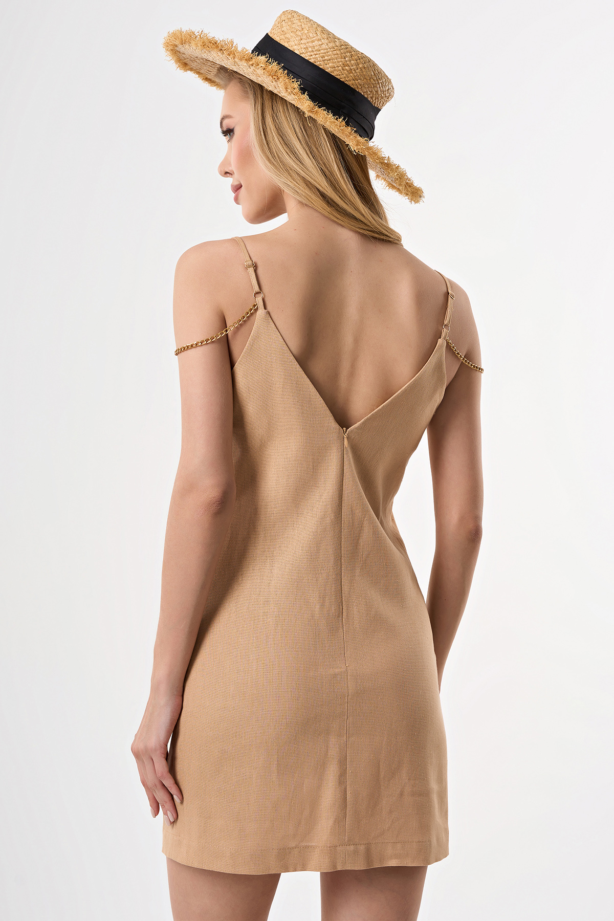 ст. цена2496руб.! Платье льняное на бретелях с цепочкой бежевый