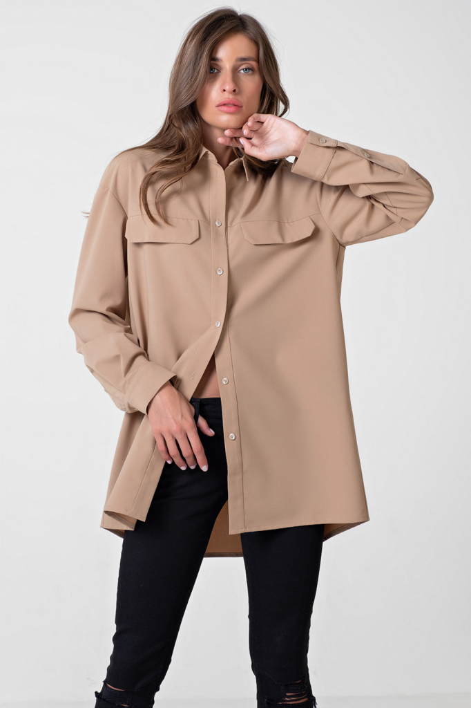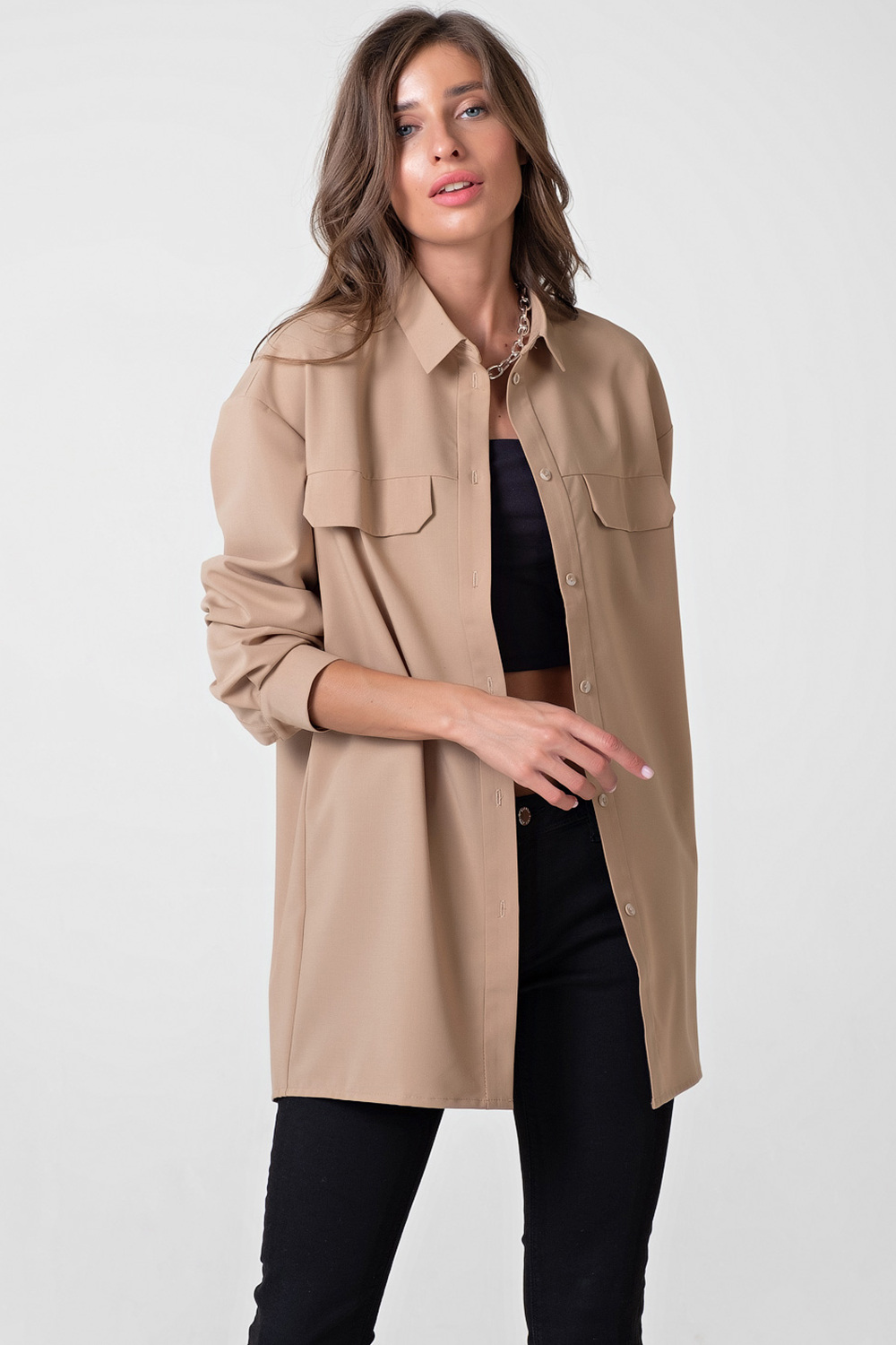 ст. цена2618руб.! Рубашка удлиненная прямая оверсайз бежевая