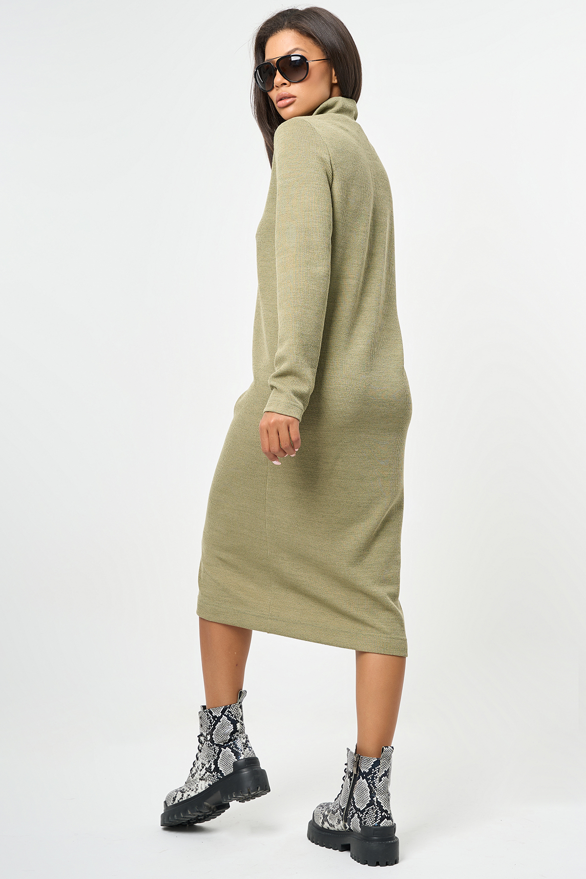 ст. цена2823руб.! Платье трикотажное прямое миди с длинным рукавом оливковое