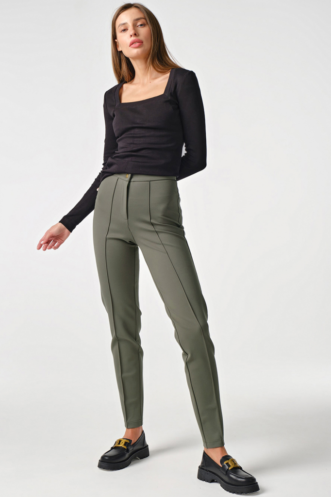 ст. цена2893руб.! Брюки трикотажные с высокой посадкой стрейч хаки