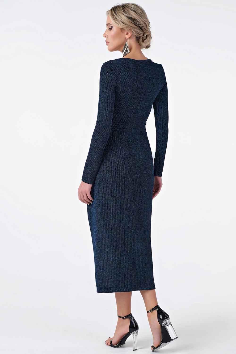 ст. цена3179руб.! Платье прилегающего силуэта из трикотажа с люрексом синее