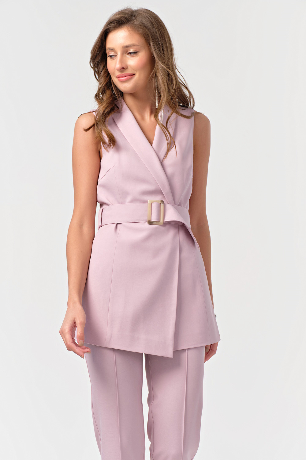 ст. цена4358руб.! Костюм офисный брючный с жилетом дымчато-розовый